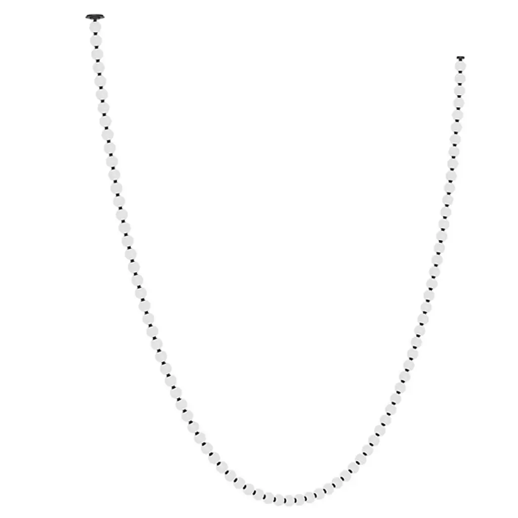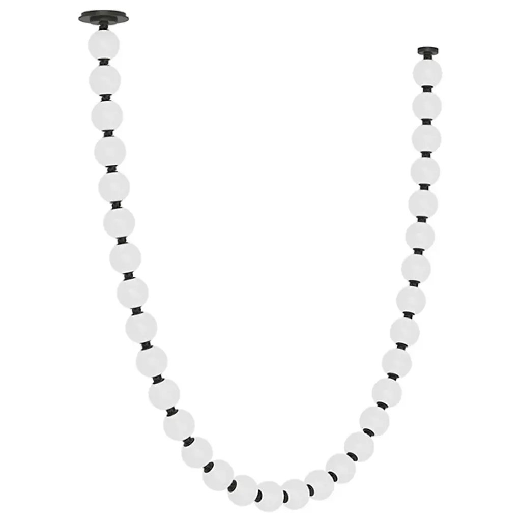 The Perle by Sean Lavin is a stunning extension to the popular Collier Series, now offered in soft white glass to provide a different design presence in a room. Available in multiple-length strands for the ultimate customization. Perle can be hung straight down in pendant form or draped from two mounting points for a striking chandelier utilizing the surface canopy or more minimal remote driver canopy. Interweave individual stands to create incredible light sculptures with stunning illumination. The natural brass connectors are custom engineered to support the glass and add additional beauty to the piece. Available with remote or surface-mounted driver options. Predetermined length options allow easy ordering with virtually unlimited versatility—contact the factory for custom configurations. Patent pending. Includes 112 watt, 4038 total delivered lumens, 90 CRI 2700K or 3000K LED modules. Remote dimmable with most LED compatible ELV and TRIAC dimmers. 277V dimmable with 0-10V dimmers. Surface dimmable with ELV and TRIAC dimmers. Remote 120V or 277V. Surface 120V-277V. Can be installed on a sloped ceiling up to 45°.