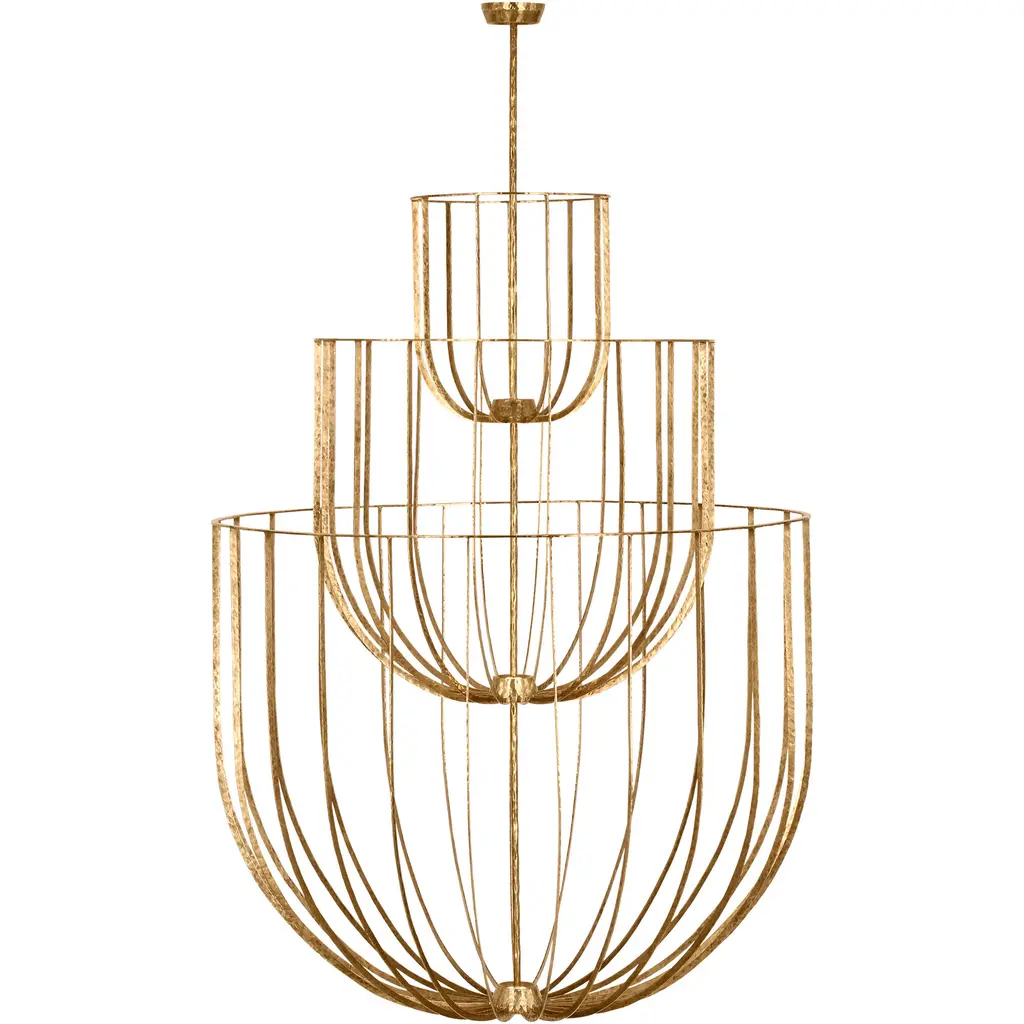 The Sanchi Grande Three-Tier Chandelier by Sean Lavin epitomizes Modern Lux. Each piece is meticulously hand-hammered by skilled craftsmen, infusing character and uniqueness into every detail. Witness the embodiment of craftsmanship that echoes through its grand scale. Radiate your space with an awe-inspiring glow that emanates from the interplay of light on the intricately hammered surface, creating breathtaking illumination.