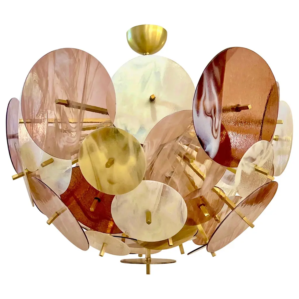 Chandelier from the Seasons collection, inspired by the Art Decó style and nature.The Seasons collection combines the unmistakable stamp of Art Decó with the wealth of colors and forms of the different seasons of the year. A masterful treatment of color conveys the particular beauty of each of these phases in nature, with subtle changes depending on the time of day or night. The colors are applied in gradients by hand on fragments that emulate leafy vegetation. The play of sensations is magnified thanks to the sparkling glass elements interleaved with the porcelain. Seasons is a versatile, evocative collection that brings nature into any interior. In Fall the countryside is filled with subtle shades of vegetation. A symphony of color of violet, green and grey tones with touches of gold in delicate harmony.Addition information: Designer: Aleksandra Zeromska / Susana RodriguezPorcelain Type: GlossFinished: GlossWireless: NoPlug Type: USDimmer: Dimmer not incudedBulb: Bulb not includedLight source: 10x E12 Max 9W Led (90W) 110VFrequency: 50/60HzLimited Serie: NoInsurance included: NoHeight (in): 24.803Width (in): 27.559Length (in): 27.559Available in other size options: Medium 100 cm; Large 140 cm