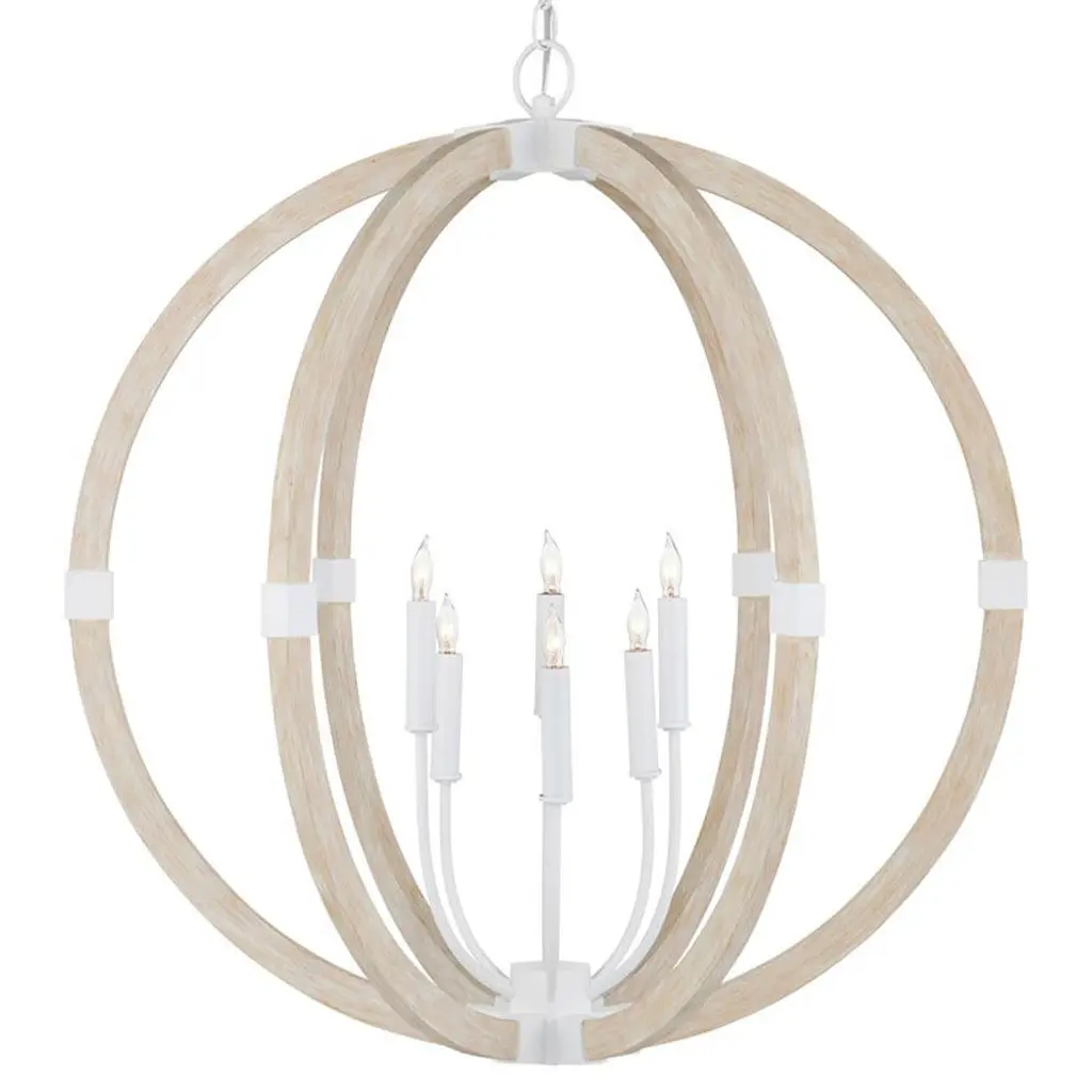 Sebastian Coastal Beach Sandstone Wood Orb Chandelier