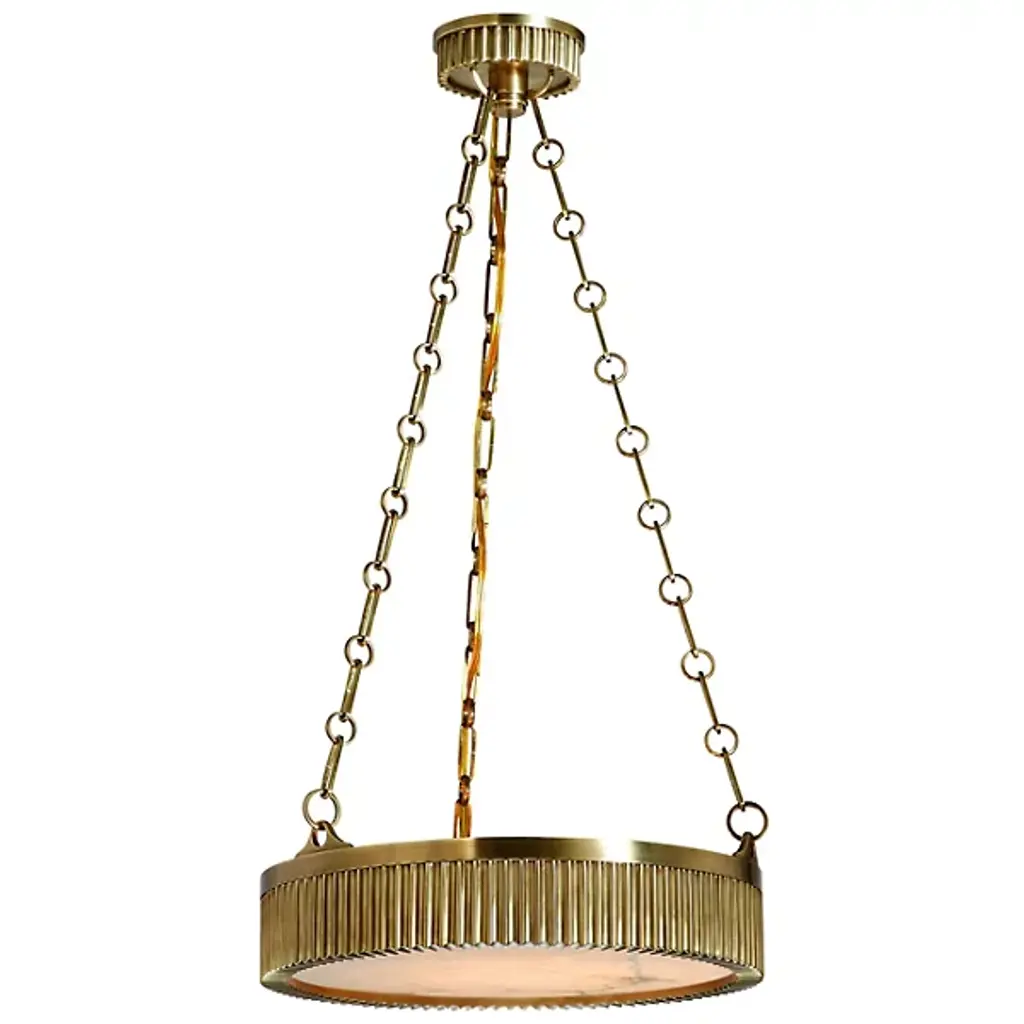 With a large ring-like silhouette, Sennett celebrates the natural beauty of alabaster. Theconcealed LED emanates a gentle, cozy glow, accentuating the ethereal essence and uniqueveining of this natural stone. Available in two sizes, Sennett is finished with a sleek Aged Brassframework that lends a modern elegance to interiors.*Due to the one-of-a-kind nature of the medium, exact colors and patterns may vary slightly fromthe image shown.