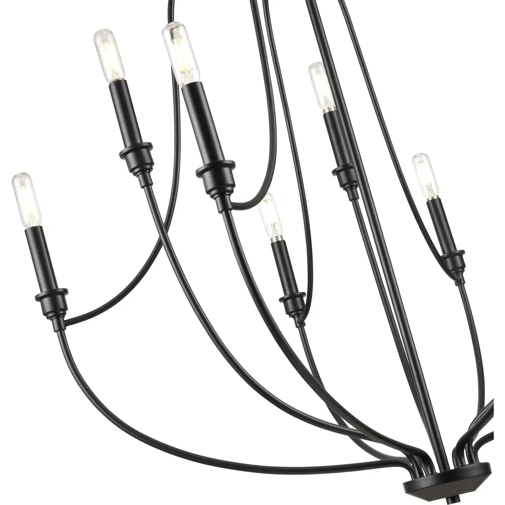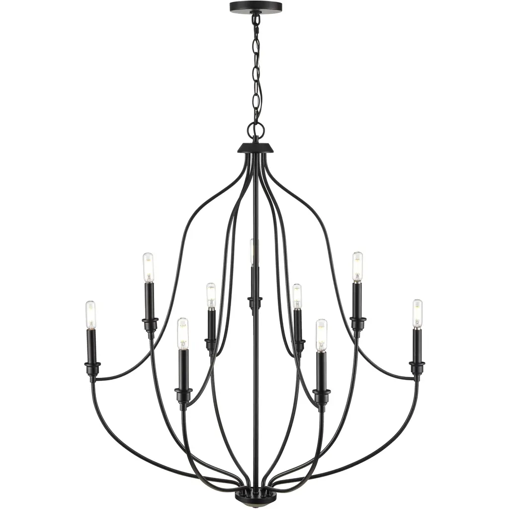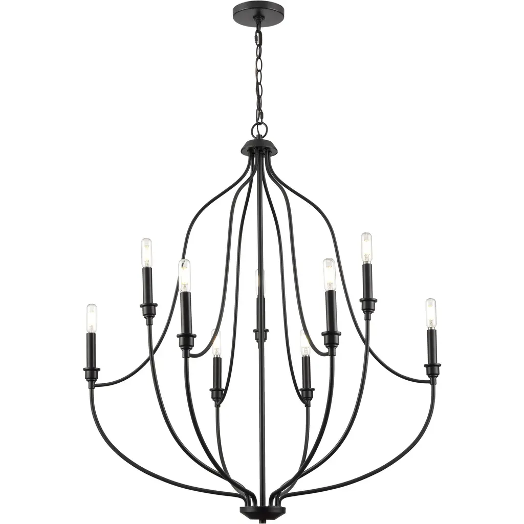 The Senoia Collection of chandeliers is a delightful interpretation of French country and bohemian lighting design. Accentuated with draping lines evocative of delicate scrollwork and perfectly placed candles with cups, the collection is finished in matte black with 5-light and 9-light options. The result is a light, airy profile perfect for a modern transition to a fully infused farmhouse.