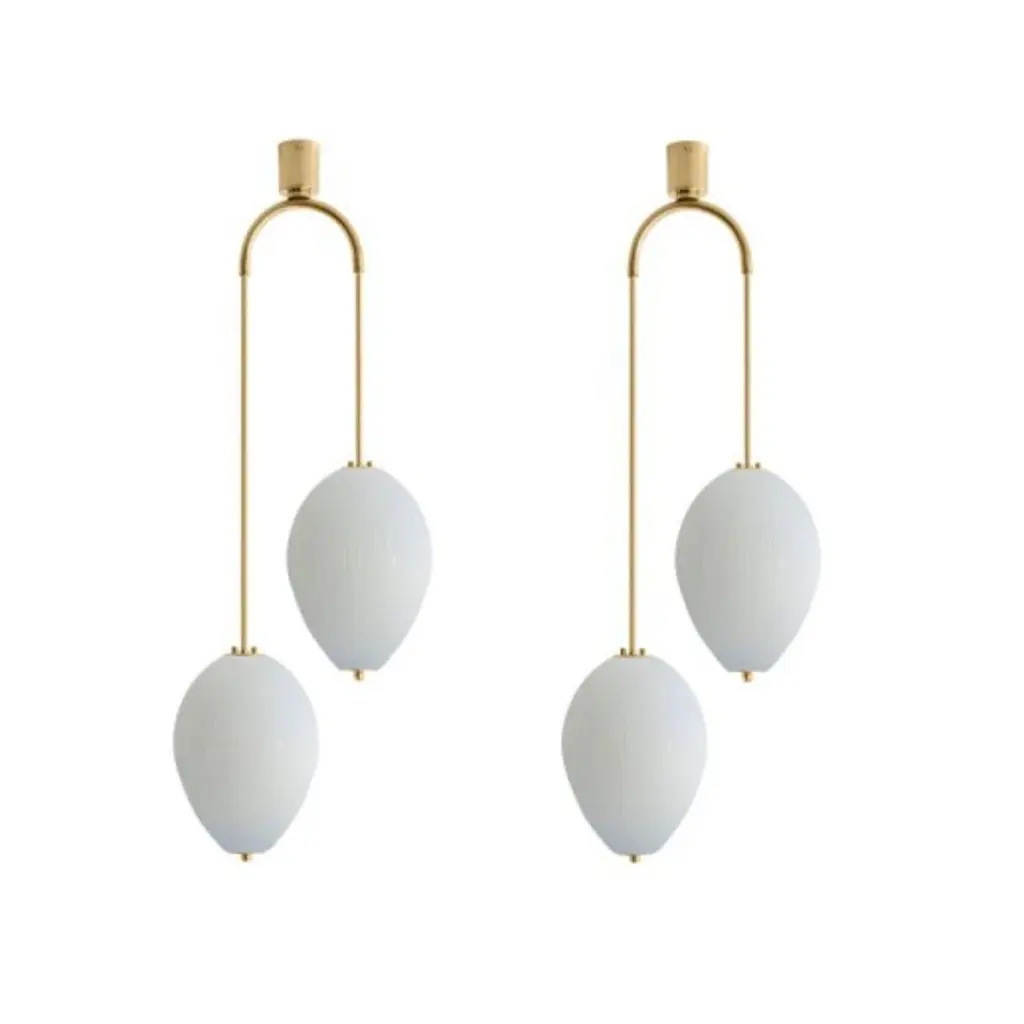 Double chandelier China 10 by Magic Circus Editions.Dimensions: H 121.5 x W 44.3 x D 25.2 cm.Materials: brass, mouth blown glass sculpted with a diamond saw.Colour: rich grey.Available finishes: brass, nickel.Available colours: enamel soft white, soft rose, jade green, mustard yellow, rich grey, opal grey.All our lamps can be wired according to each country. If sold to the USA it will be wired for the USA for instance.Rethinking, reimagining, redesigning familiar objects that we look at every day without ever really seeing them and using light to tell stories, this how Marie-Lise Féry sees her work. Offering a new take on our urban heritage, changing our perspective through her work on scale and usage. Since 2015, Magic Circus Éditions has been setting the world of lighting ablaze, creating airy, playful and magical designs that merge retro with sleek and contemporary. A free-spirited antiquarian, founder Marie-Lise Féry draws inspiration from the world of cabarets and the magic of the circus to give shape to imaginative, fun and playful collections. The air of magic she breathes into her work reveals a wealth of interpretations and widens possibilities for creative interiors. The combination of traditional know-how — outstanding craftsmanship — and her imaginative take on historical, everyday objects lends an unexpected and charming quality to her creations.Féry’s lights are designed just like magic lanterns — precursor to modern-day cinema —, inspiring wonder through oversized, seemingly weightless compositions and understated references. Each collection has its own inspiration: the first models of street lighting for Collection 01; the happy memories of funfairs, sweets and balloons for her latest collection Balloon; the Far East for Collection 02; and the colourful, carefree spirit of the 1970s for Pop-Up, released in 2019. Magic Circus Éditions draws on airy designs, dream-like inspirations, colours and fun to create a sense of enchantment.Magic Circus Éditions founder Marie-Lise Féry was born in Paris. After studyingart business, she moved to New York to start her career. Fascinated by the city’s architecture, she found an endless source of inspiration in the Big Apple’s monumental decors. Returning to France to settle down in Lyon, she opened an antiques gallery named Un Château en Espagne, and started telling her own stories through objects she gleaned on markets all around the country. A way for her to perpetuate her mother’s motto: “Objects with a soul will always belong”. Since 2015, the year she established Magic Circus Éditions, she has moved on to lighting as a new medium for telling her stories, bringing the magic of the show into home interiors. With her love for the circus, turn-of-the-century cabarets and music halls, Marie-Lise Féry’s love of unusual objects has remained strong, but now prefers to focus her attention on pieces she has imagined herself. With a fun and light-spirited approach, she creates a bold visual effect that elicits instant attraction. She collaborates with some of Europe’s greatest artisans, from Prague and Murano to Clermont-Ferrand, working for instance with a Czech company specialising in sculpting glass using a diamond-blade saw, or an auto body shop renowned for their work with lacquers. The refinement of shapes and finishes, bespoke designs and technical excellence all contribute to creating pieces that inspire surprise and wonderment. In the manner of Wes Anderson in Grand Budapest Hotel, blending together elegance, humour and unexpected details, her designs never fail to surprise. Attentive to the effect of her designs both in daylight and at night, Marie-Lise Féry takes us on a journey through space (from outside to inside) and time (from yesterday to today).