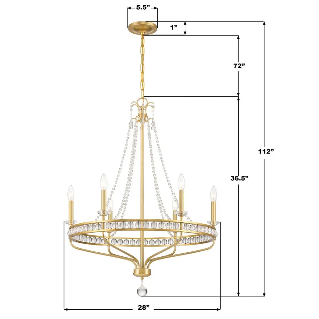 Seville 6-light Chandelier, Aged Brass