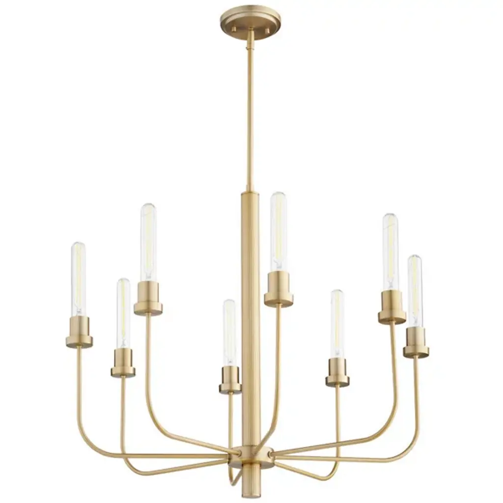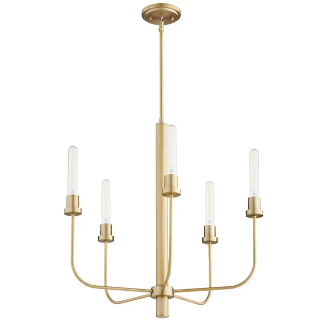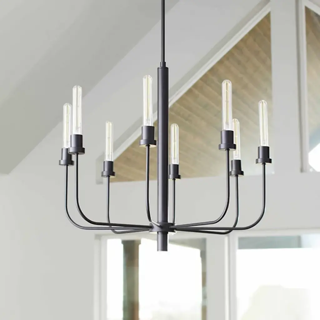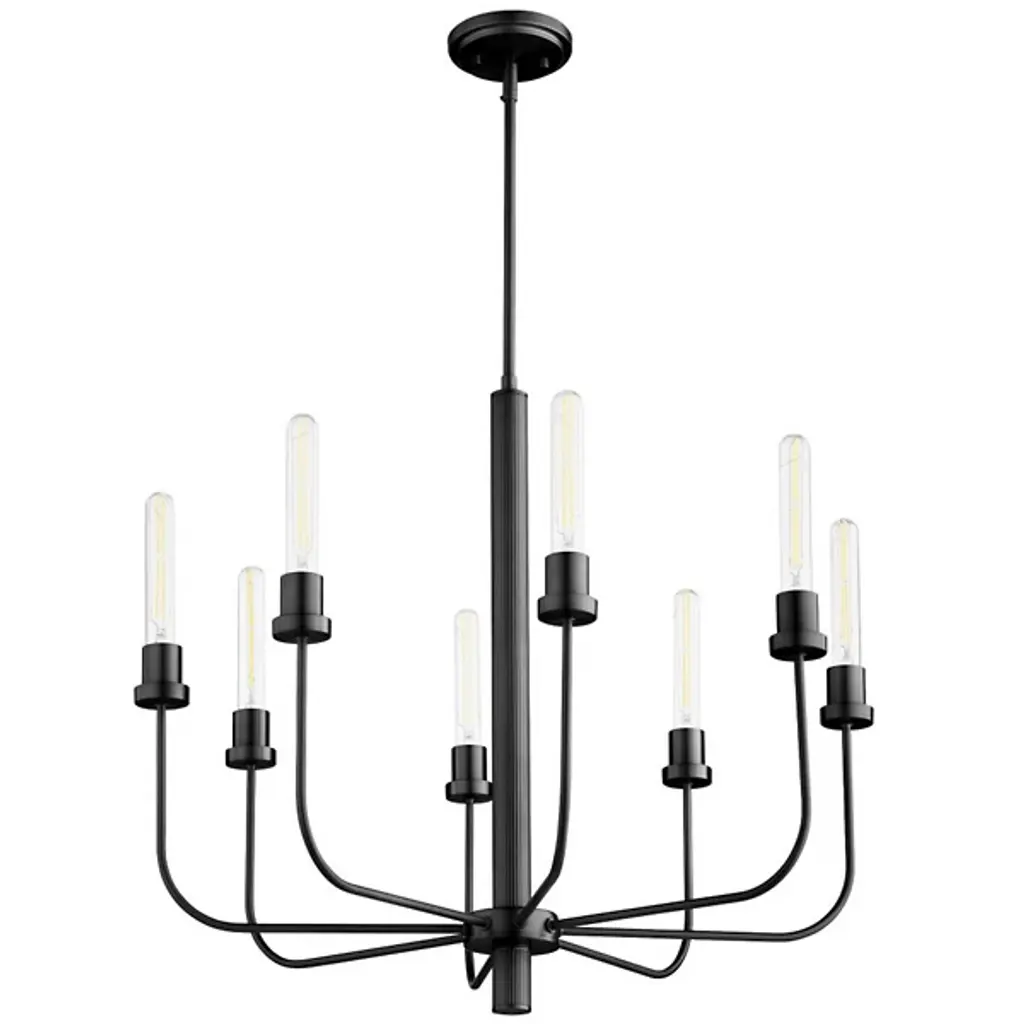 Presented by Quorum International, the Sheridan Chandelier features rounded angles and bold lines that share space with more rounded profiles. This fixture has soothing, neutral hues and accentuates less-is-more. Ideal for many locales of choice, this is the perfect fixture for your indoor kitchens, dining rooms, living rooms, or entry foyers.