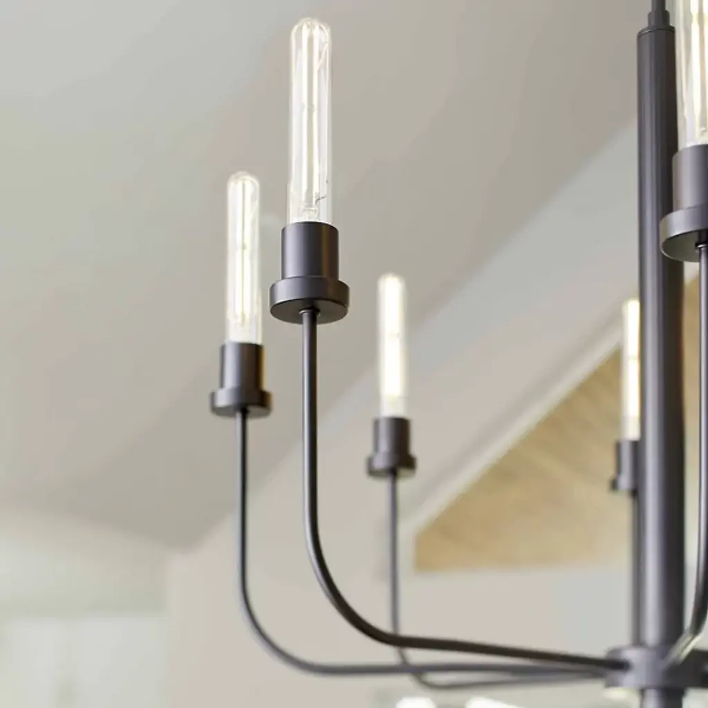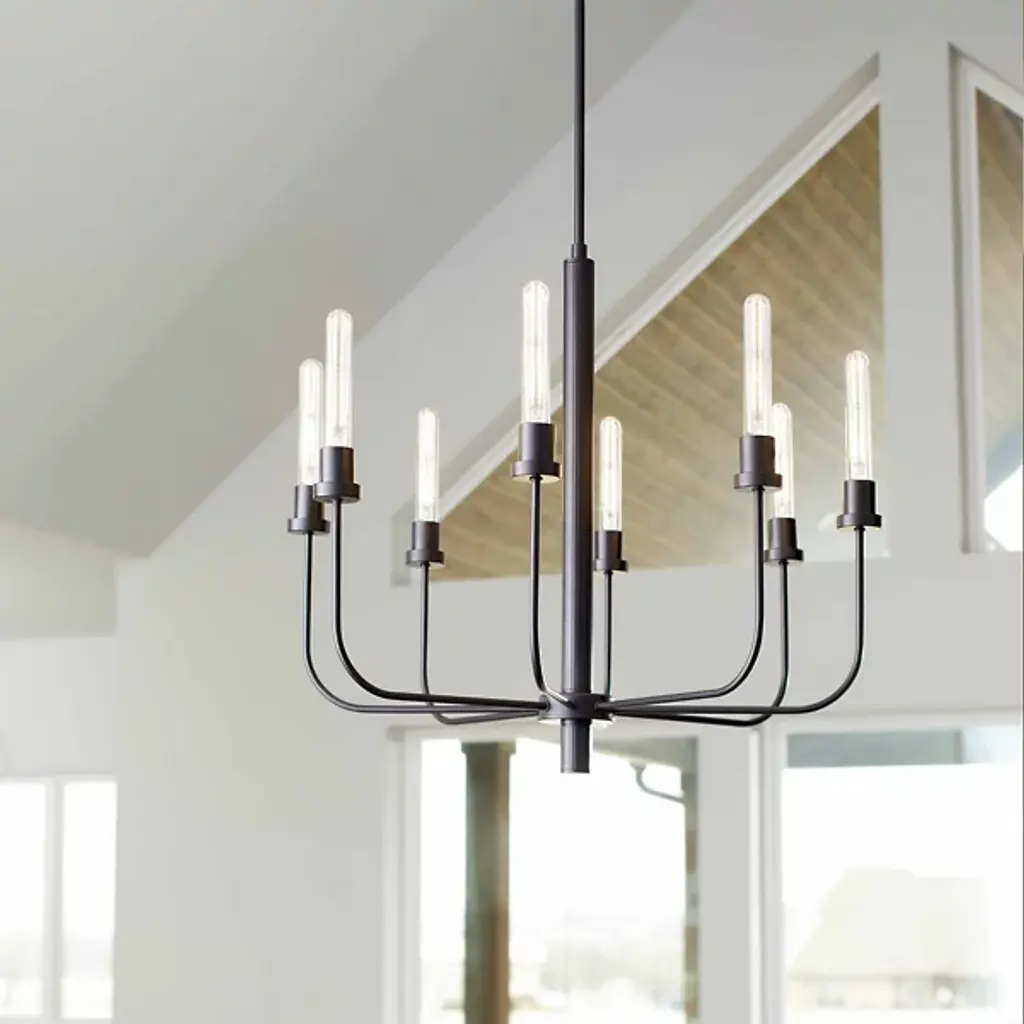 Presented by Quorum International, the Sheridan Chandelier features rounded angles and bold lines that share space with more rounded profiles. This fixture has soothing, neutral hues and accentuates less-is-more. Ideal for many locales of choice, this is the perfect fixture for your indoor kitchens, dining rooms, living rooms, or entry foyers.