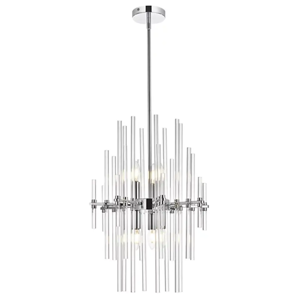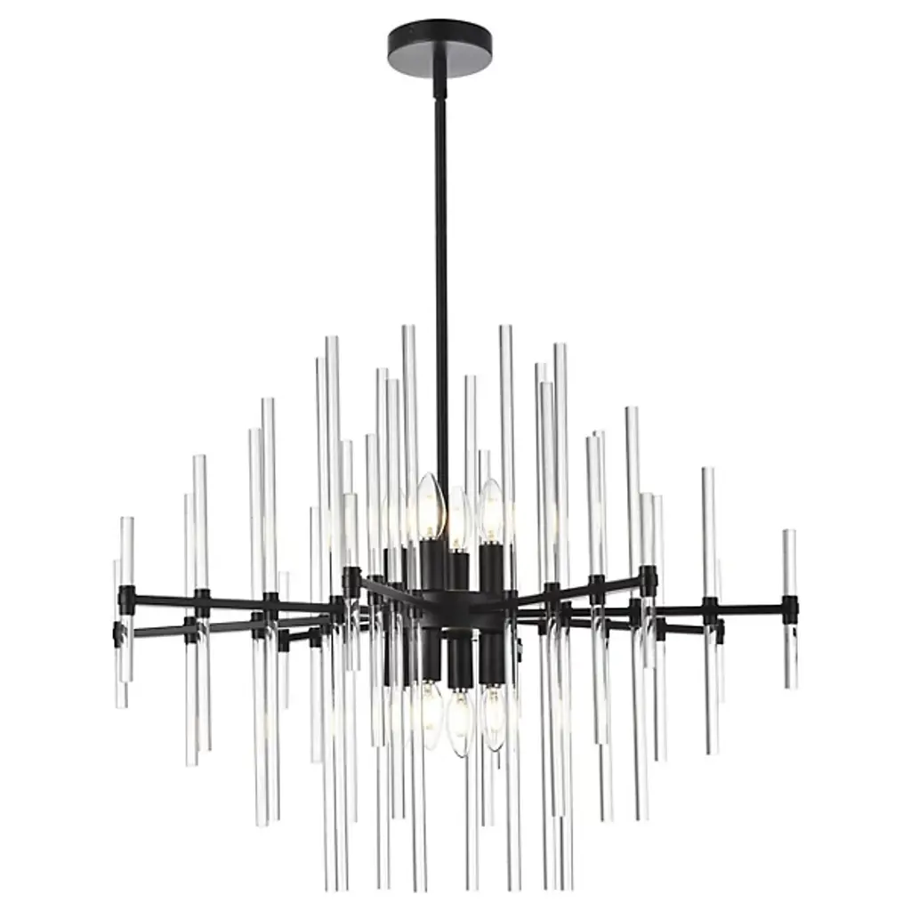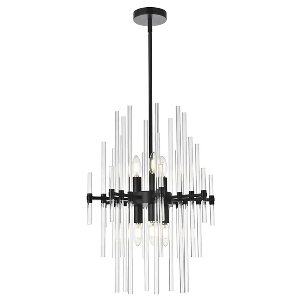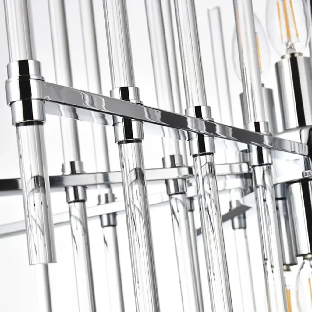 The Sienna Chandelier from Elegant Lighting is a union of crystal and light. Its diamond-shaped outline, formed by an array of clear crystal rods, creates a prism-like effect that scatters light in an impressive display. This fixture's adaptable design, with its ability to mount on sloped ceilings, ensures it can be the crowning jewel in a variety of architectural settings. Its dimmable feature allows for fine-tuning of ambiance, from subtle sparkle to full radiance.