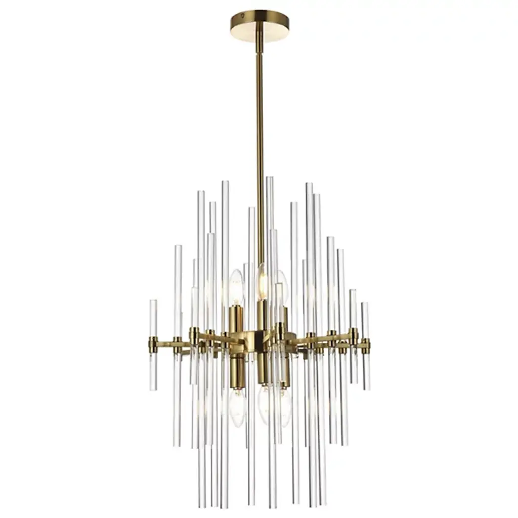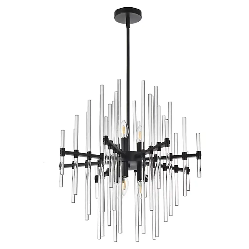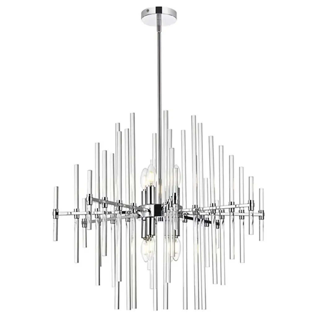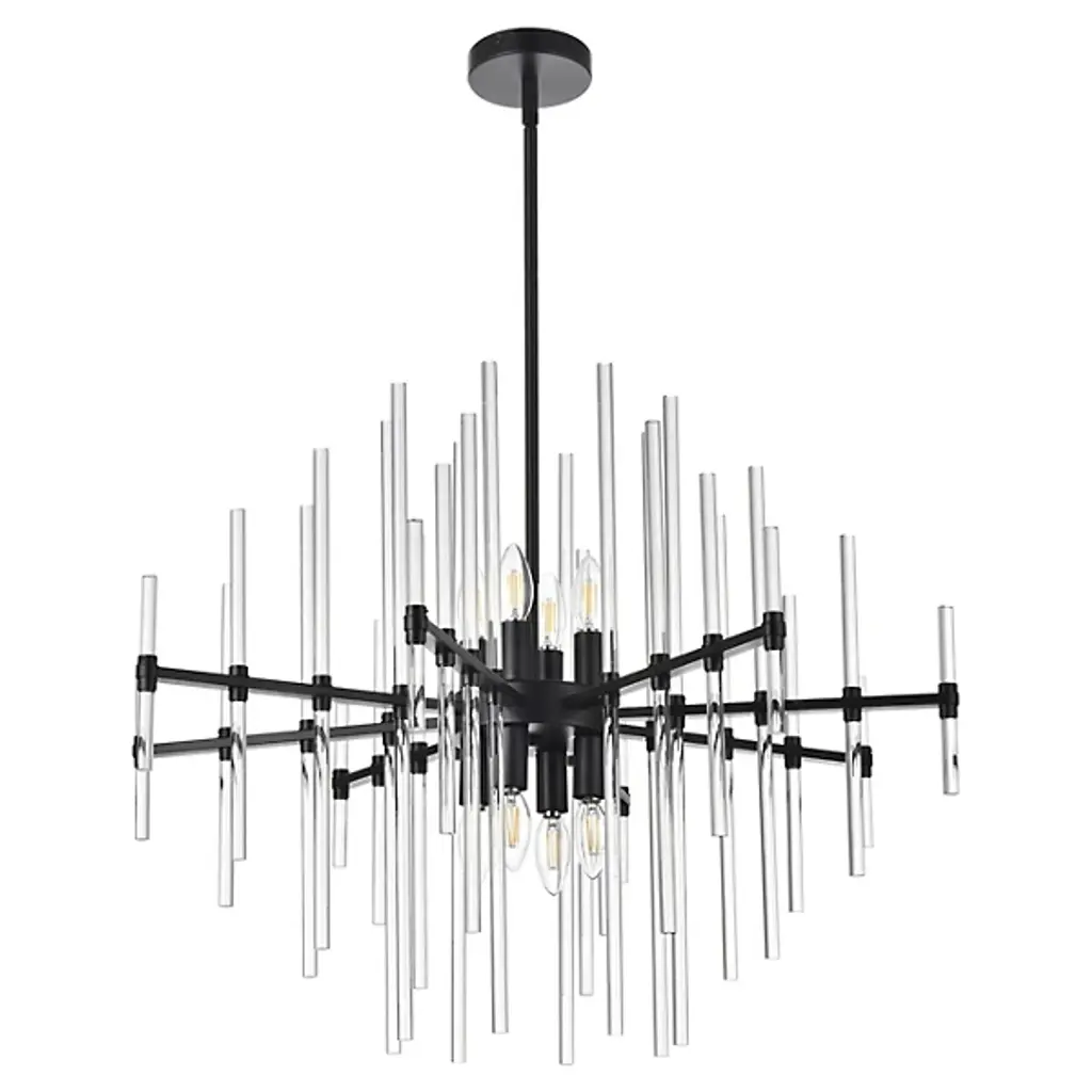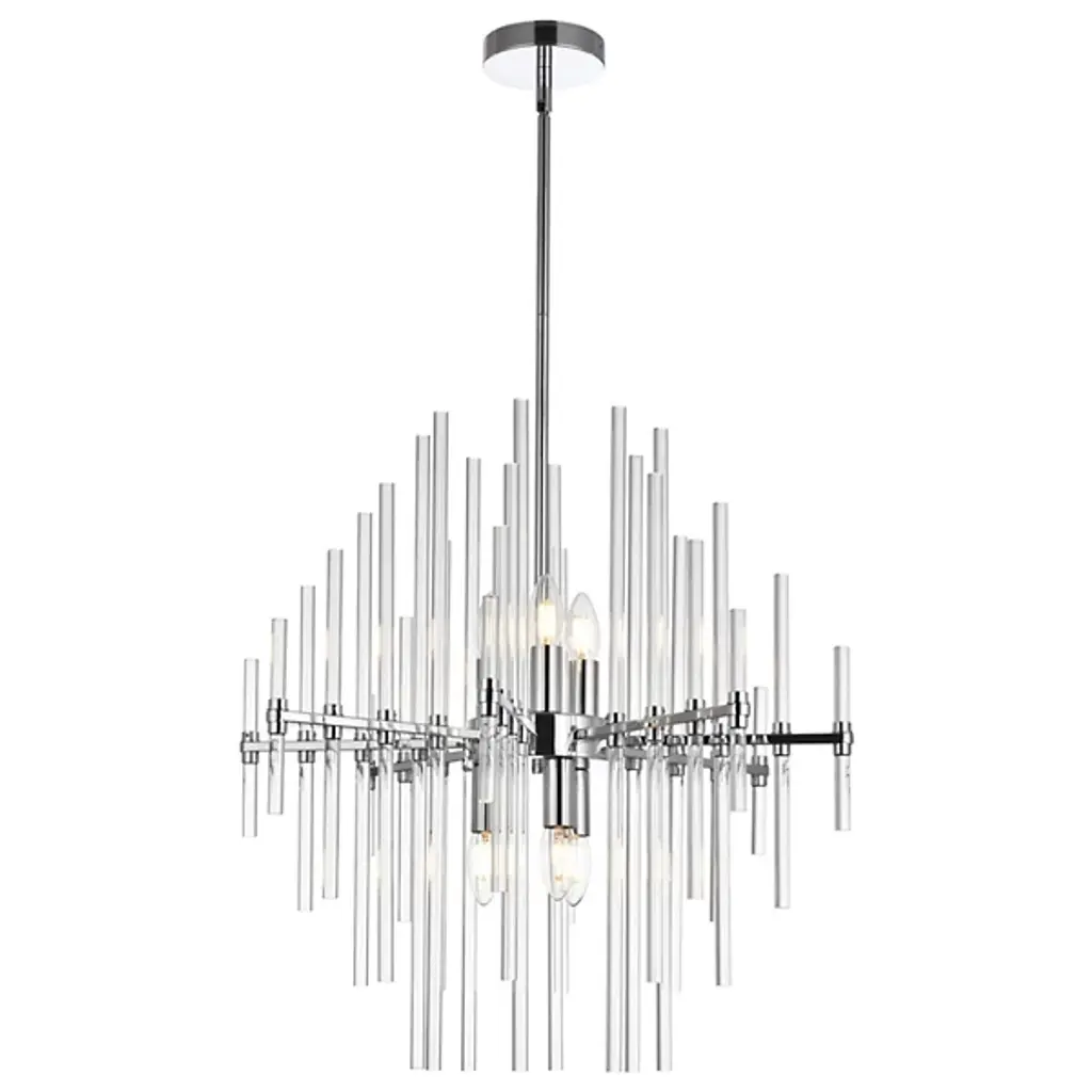 The Sienna Chandelier from Elegant Lighting is a union of crystal and light. Its diamond-shaped outline, formed by an array of clear crystal rods, creates a prism-like effect that scatters light in an impressive display. This fixture's adaptable design, with its ability to mount on sloped ceilings, ensures it can be the crowning jewel in a variety of architectural settings. Its dimmable feature allows for fine-tuning of ambiance, from subtle sparkle to full radiance.