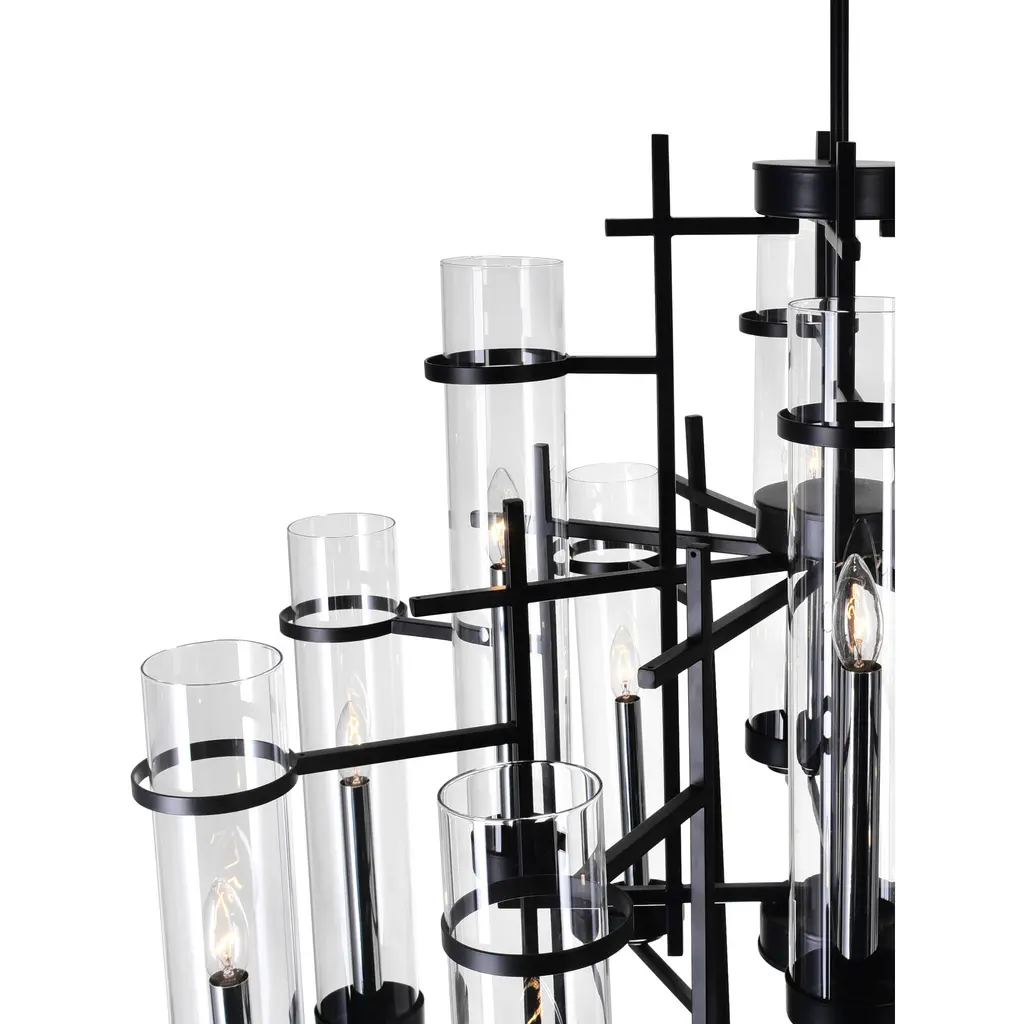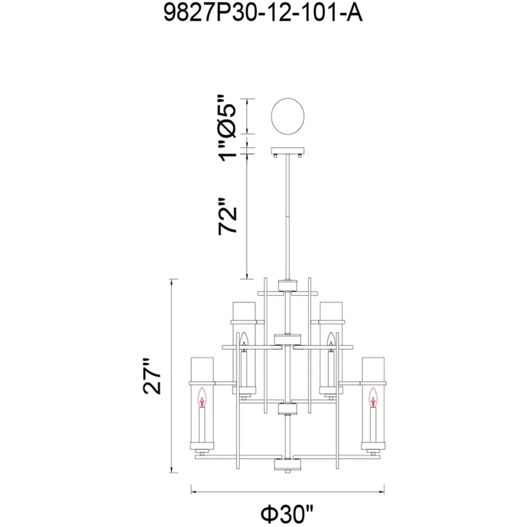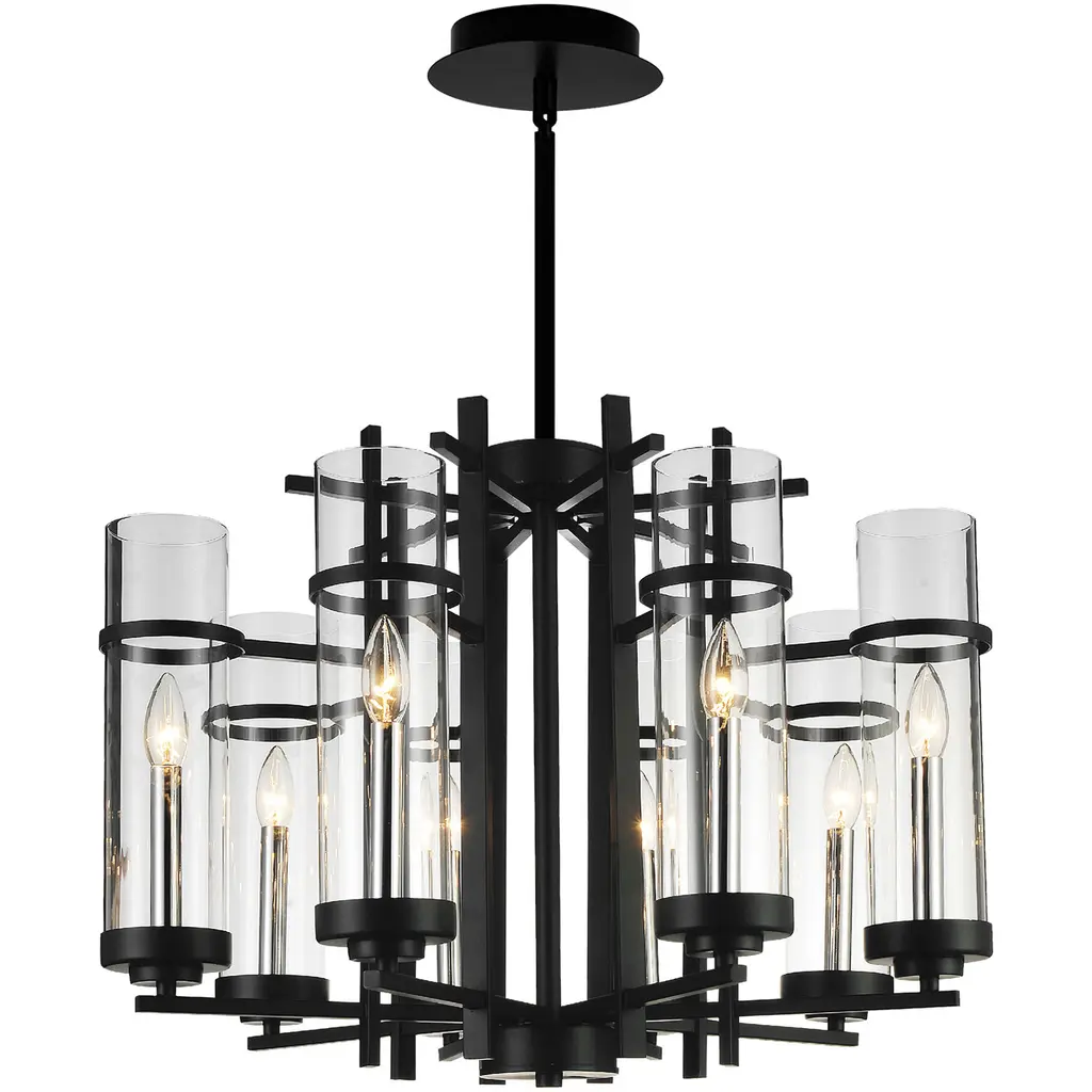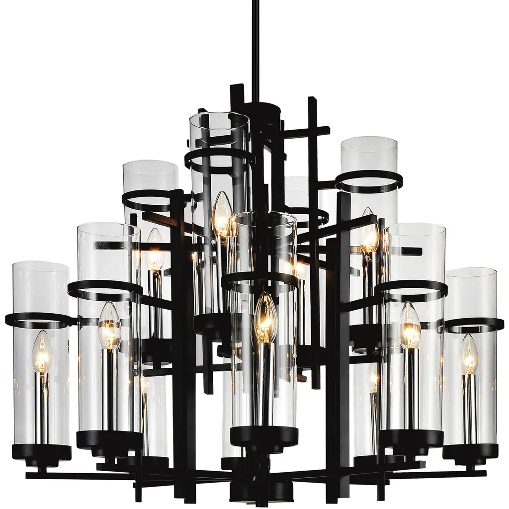 Bring a blend of modern elegance and timeless charm to your home with the Sierra 12-Light Up Chandelier. Featuring a 30-inch round design, this chandelier showcases tiered cylindrical glass shades that encase candelabra bulbs, offering both ample illumination and a warm, inviting atmosphere. Perfect for contemporary spaces seeking a sophisticated lighting centerpiece.