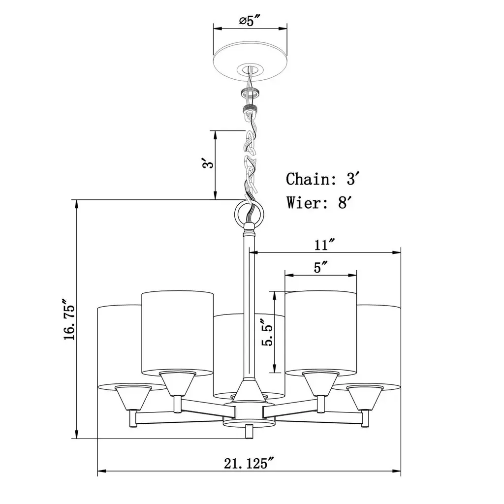 Signature 5 Light 21.25 Inch Brushed Nickel Chandelier Ceiling Light