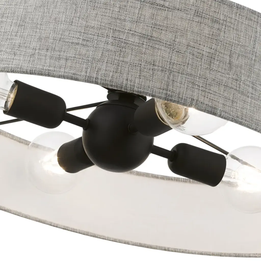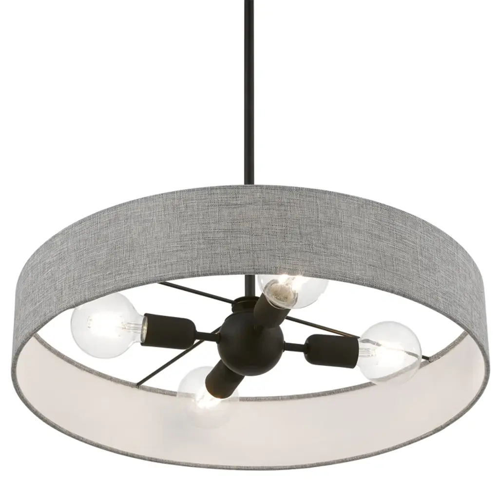 A classic silhouette gets a modern update in this 4-light chandelier. Crafted from steel, it features a contemporary drum-style silhouette with a slim gray fabric shade offering an understated look. Inside, four sockets suit standard bulbs, which are sold separately. Plus, the light can be set to a dimmer switch to control its glow depending on the mood. Up top, it hangs from a height-adjustable downrod and a canopy that adapts to sloped ceilings. Measuring 22'' wide, this chandelier fits in any entryway, dining room, or stairwell.
