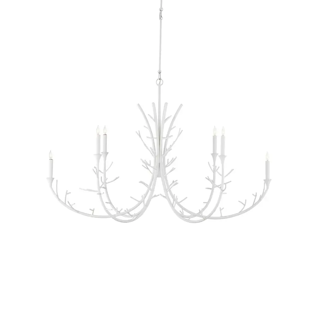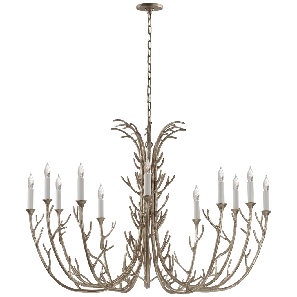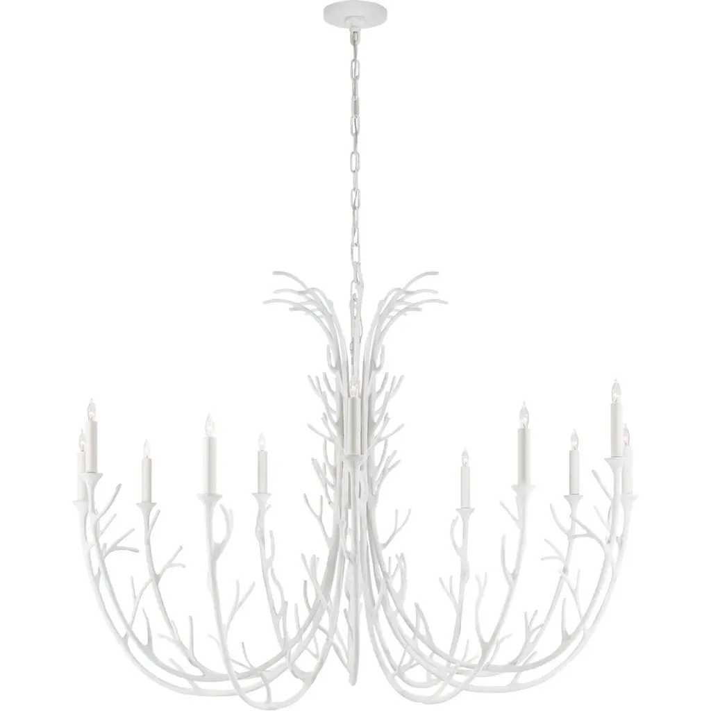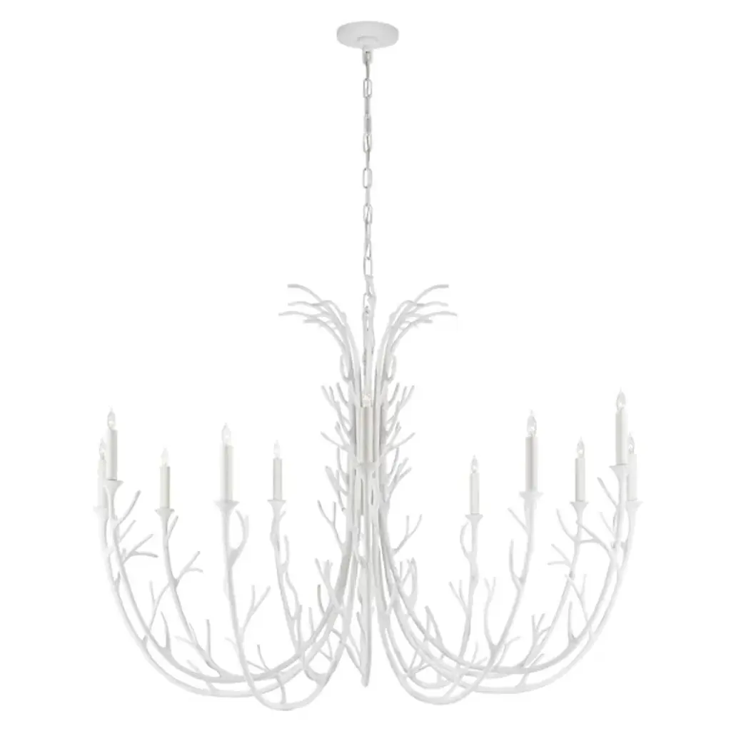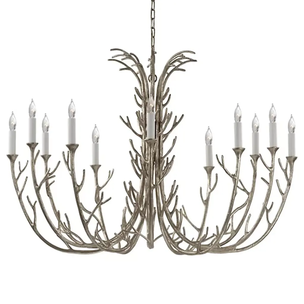 Evoking a natural allure, the Silva Chandelier from Visual Comfort Signature, formerly known as Visual Comfort, unites the space with an impressive, organic display reminiscent of antlers from a great animal. Starting at a central pillar, the arms swoop down and outward in pronounced, significant arcs, each adorned with sprouting stems for a visually dynamic display. At the end of each, the arms present candelabra-style bulbs that shine a warm, extensive glow throughout the space that harkens back to simpler times in the great outdoors.