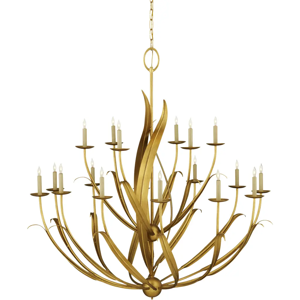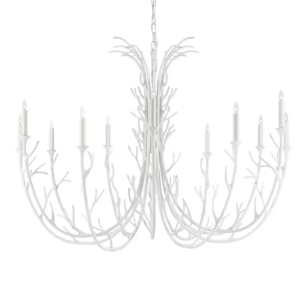 Evoking a natural allure, the Silva Chandelier from Visual Comfort Signature, formerly known as Visual Comfort, unites the space with an impressive, organic display reminiscent of antlers from a great animal. Starting at a central pillar, the arms swoop down and outward in pronounced, significant arcs, each adorned with sprouting stems for a visually dynamic display. At the end of each, the arms present candelabra-style bulbs that shine a warm, extensive glow throughout the space that harkens back to simpler times in the great outdoors.