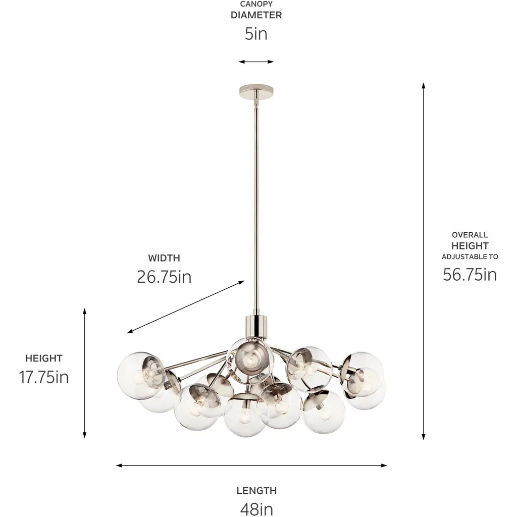 Silvarious 12 Light 26.75 Inch Polished Nickel Chandelier/semi Flush Ceiling Light