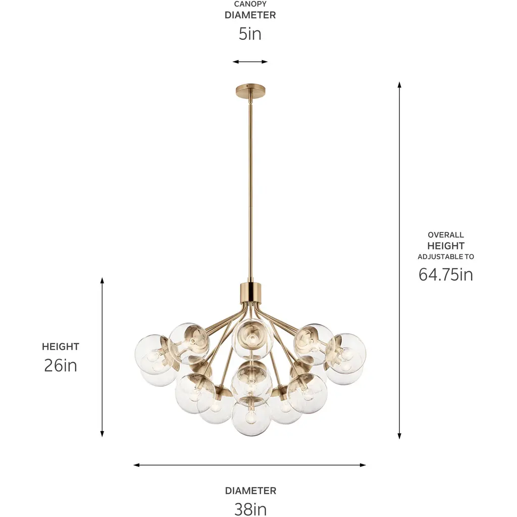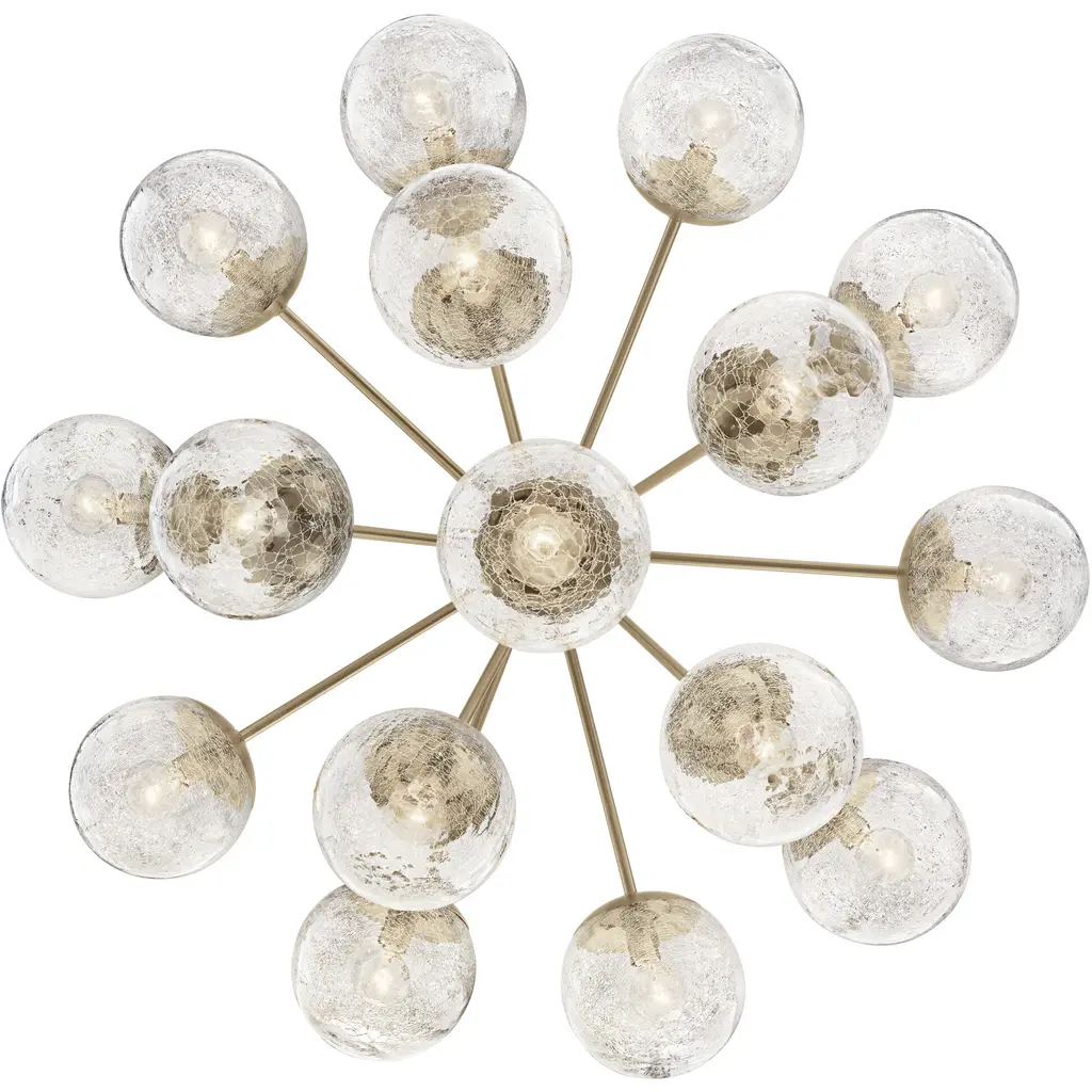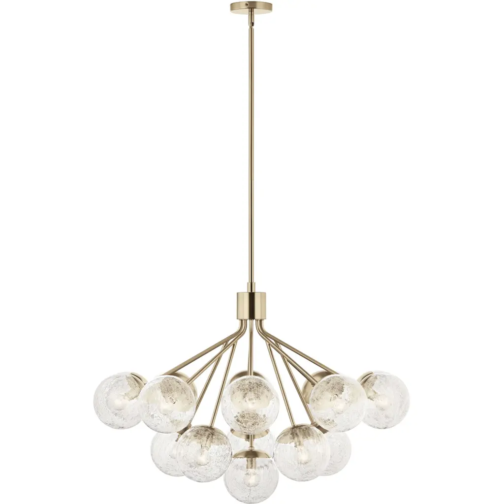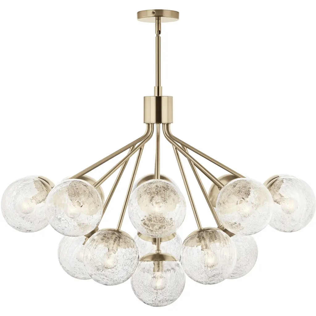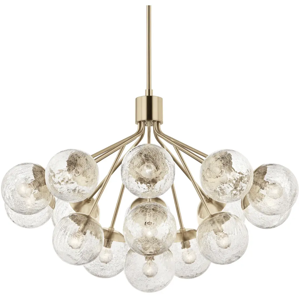 Silvarious 38 Inch 16 Light Convertible Chandelier with Clear Crackled Glass in Champagne Bronze
