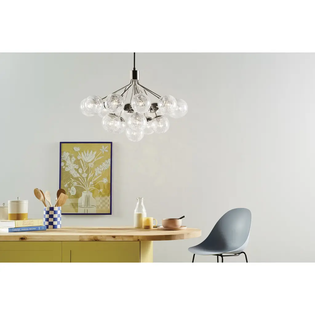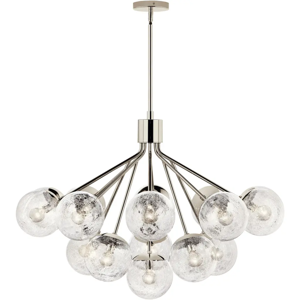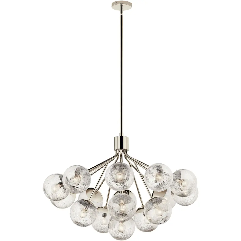 Silvarious 38 Inch 16 Light Convertible Chandelier with Clear Crackled Glass in Polished Nickel