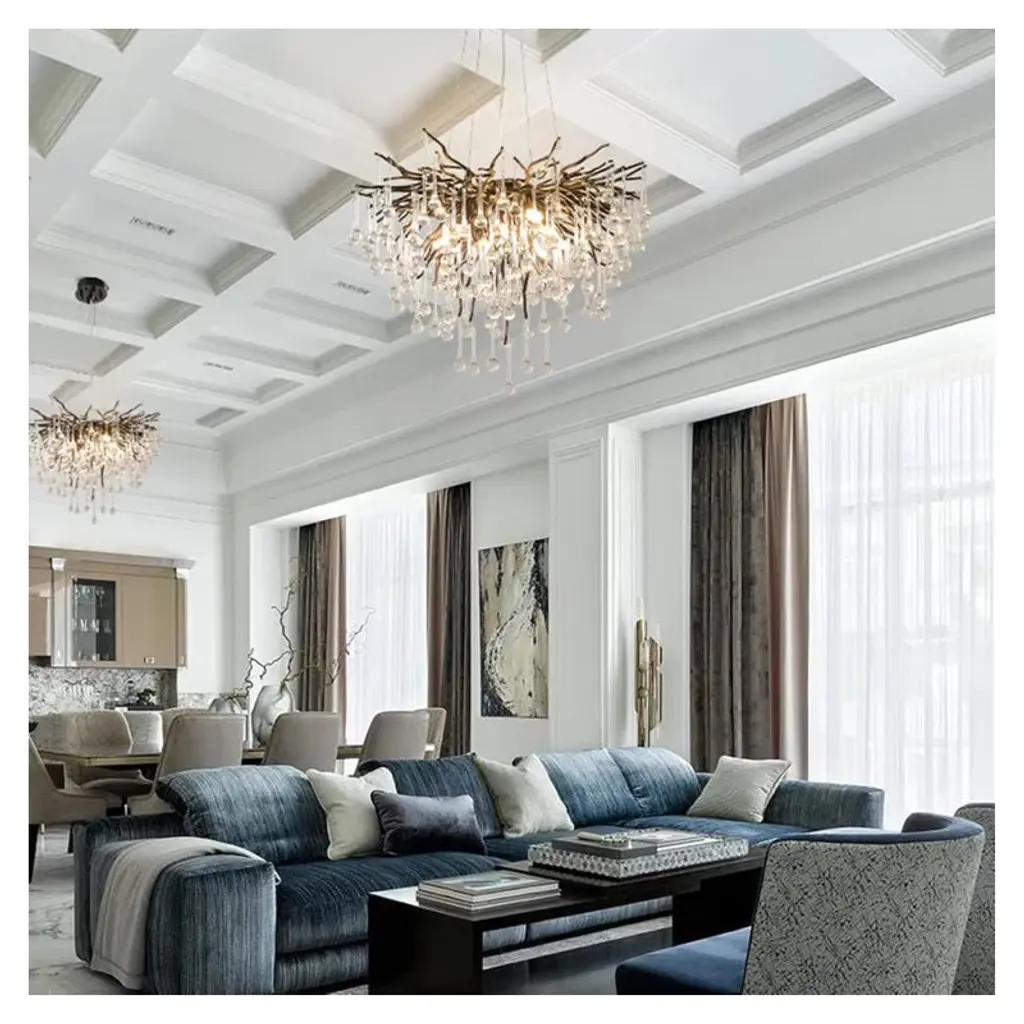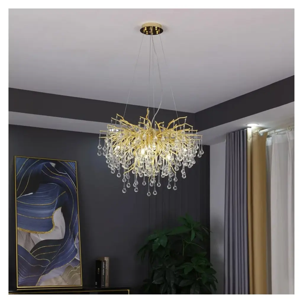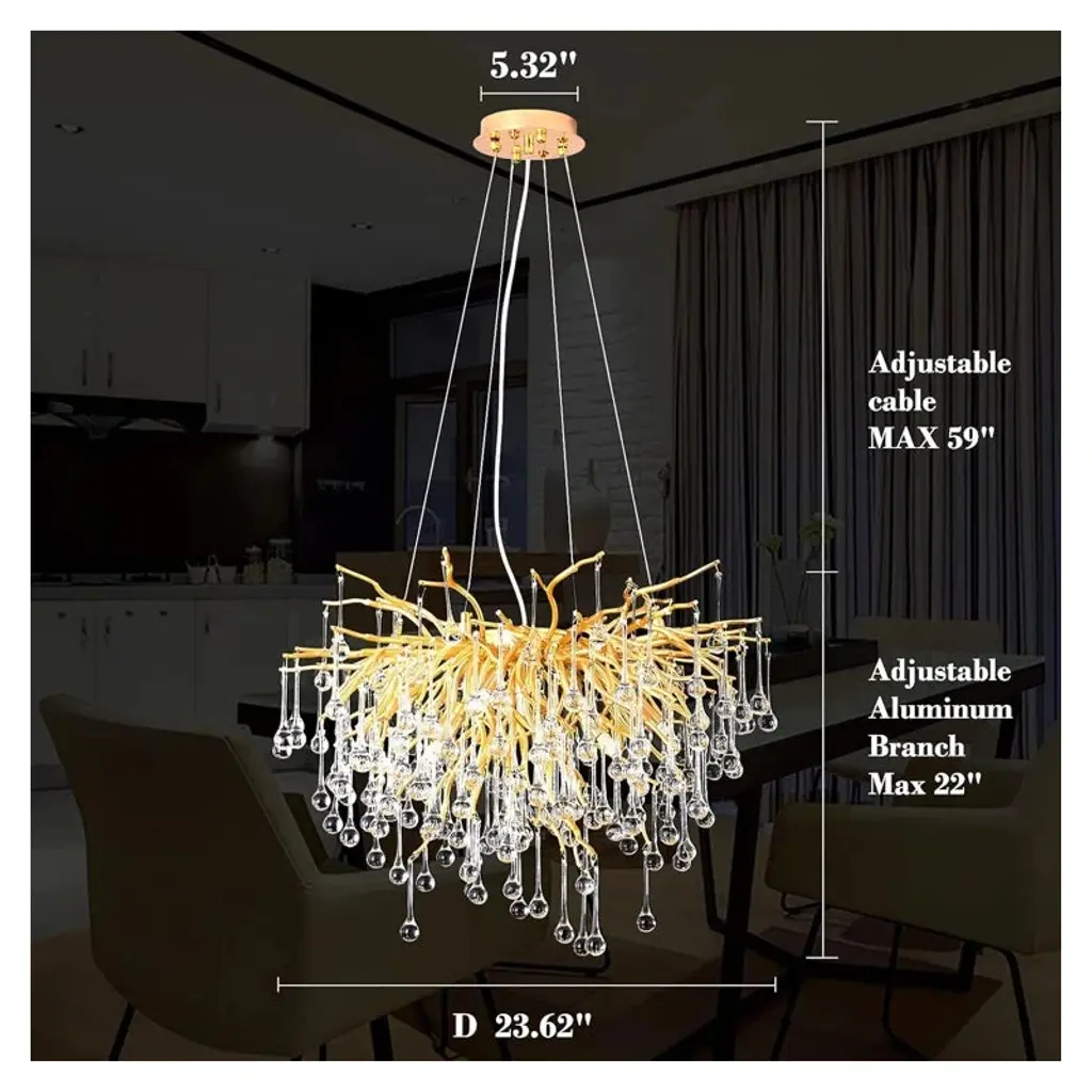 Everly Quinn modern crystal chandelier the branch crystal chandelier brings a bold, glamorous presence to your interior space. Branches drip with hand blow glass teardrops that reflect light across your room. The gold crystal chandelier sets the tone in elegance as a classic and graceful focal point. Features Its metal construction is hang-forged by our artisan blacksmiths and covered with a luxurious frosted finish. Branches drip with hand blow glass teardrops that reflect light across your room. Hard-wired. Installable on sloped or flat ceilings. Capable of being dimmed with compatible dimmable bulbs (not included). The chandelier creates a romantic atmosphere. It can help to decorate your home and add a comfortable ambiance. It is perfect for your living room, bedroom, dining room, hallway, and guest room.