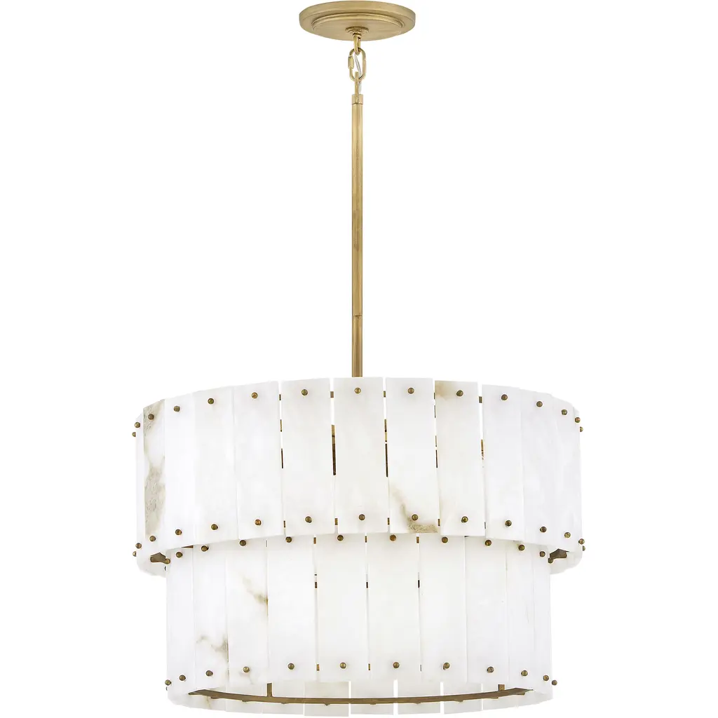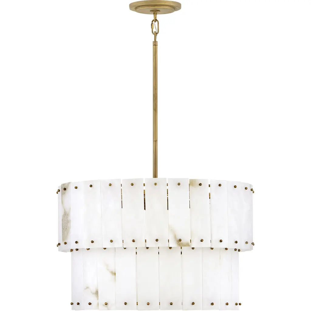 Simone has the timeless charm to infuse any space with opulent luxury. Fashioned with natural alabaster panels in a traditional tiered style, the effortless appeal speaks for itself. Perfect for dining rooms, foyers, and grand spaces, Simone is a conversation-starting piece that is truly a work of art. Simone has the timeless charm to infuse any space with opulent luxury. Fashioned with natural alabaster panels in a traditional tiered style, the effortless appeal speaks for itself. Perfect for dining rooms, foyers, and grand spaces, Simone is a conversation-starting piece that is truly a work of art. Classic, elegant lines and timeless details enhance a traditional space. Luxurious gold finish with opulent sheen