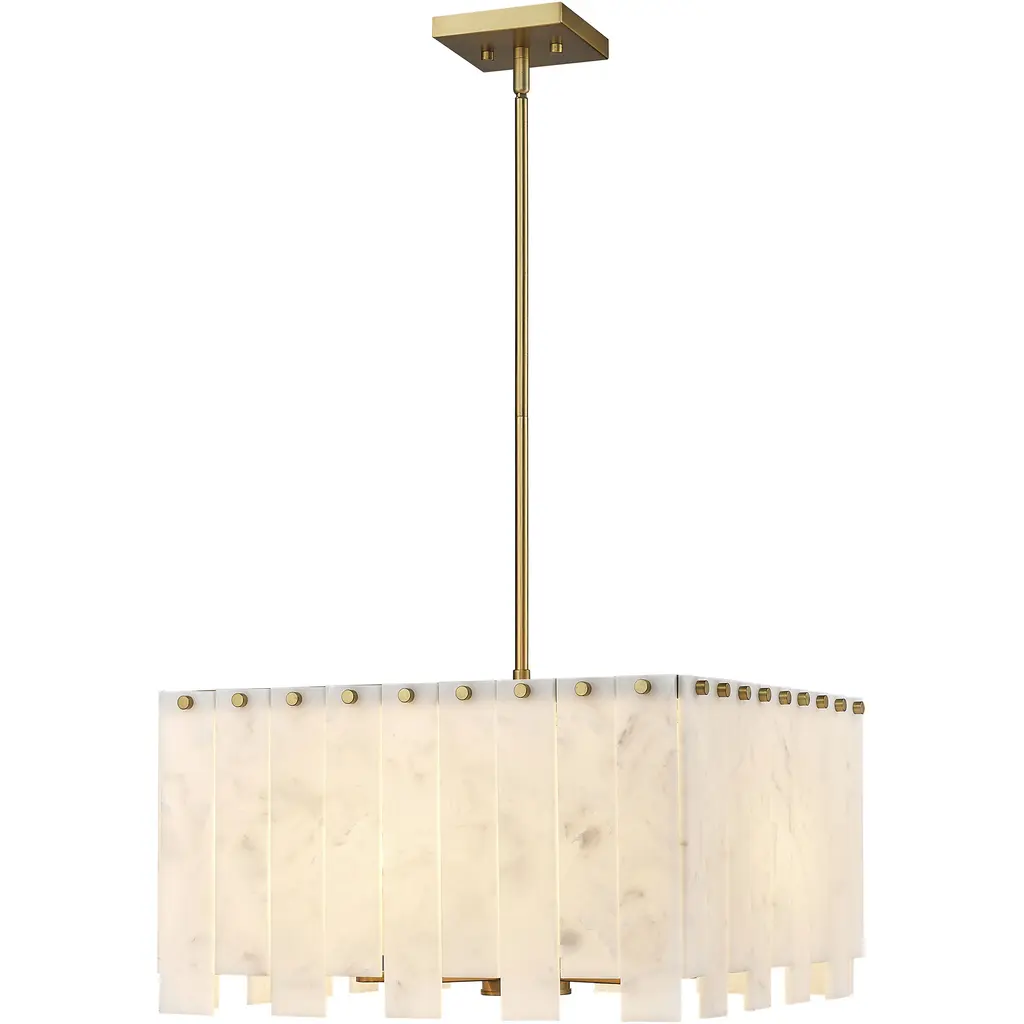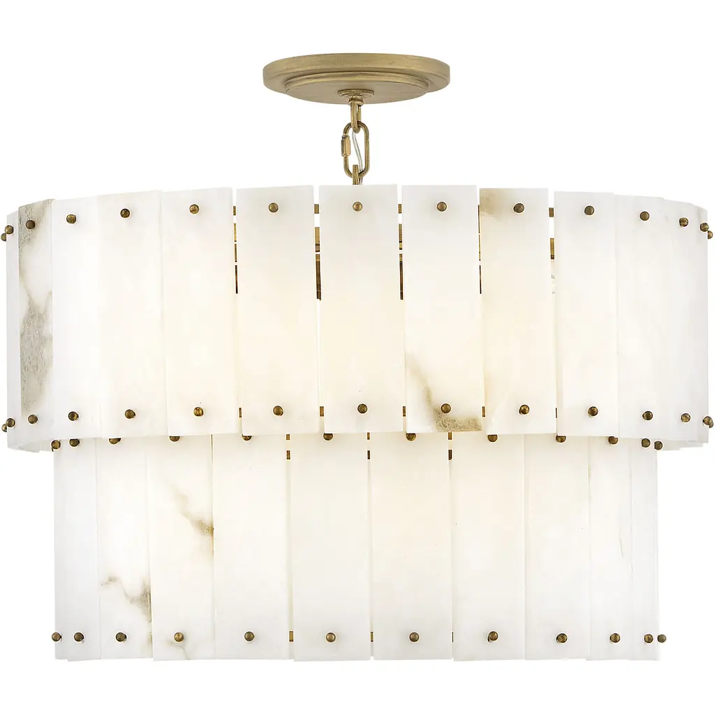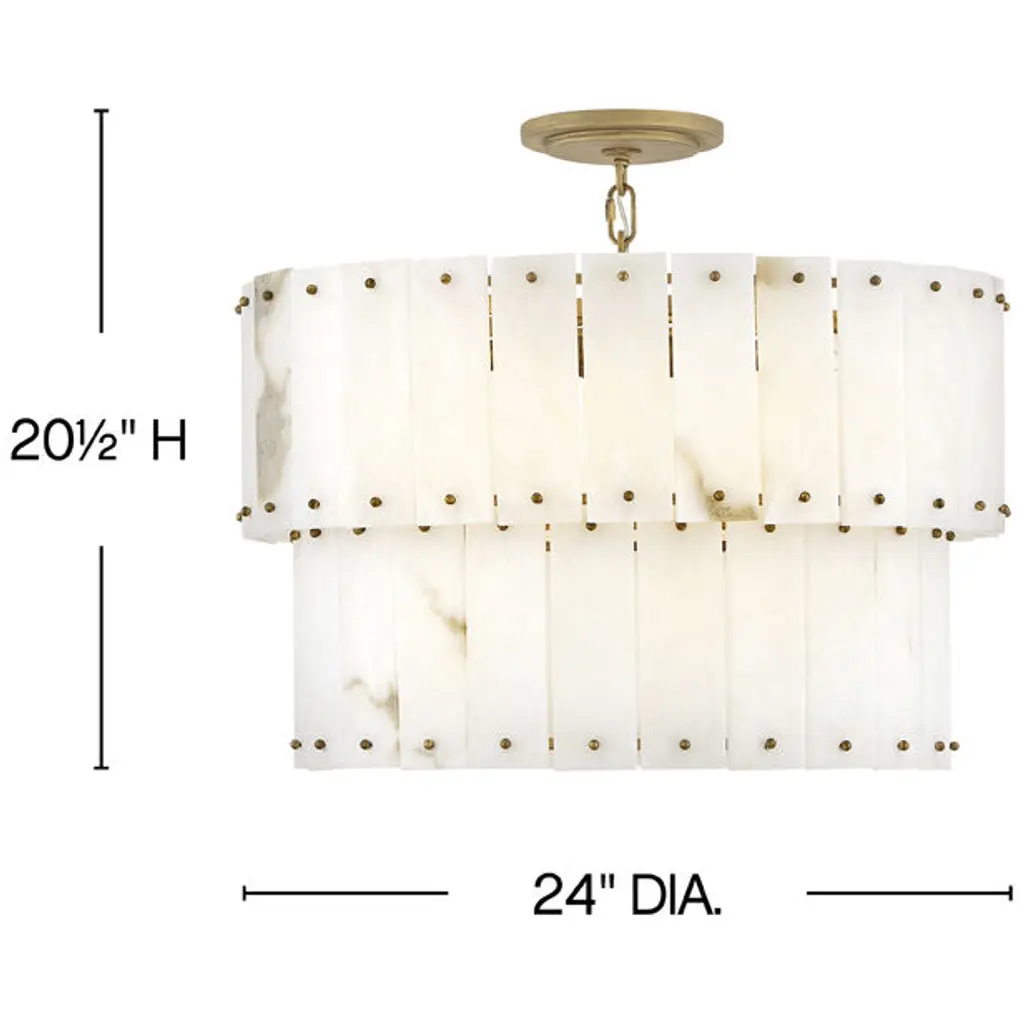 Simone Led 24 Inch Burnished Gold Chandelier Ceiling Light In Alabaster, Drum