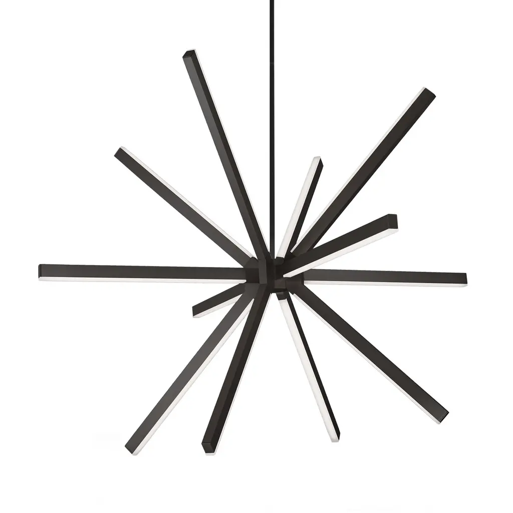 Sirius' array of elements emanate from a single point in a starburst of light. A visual statement that draws the eye as the burnished finish interplays with the light, revealing shifting highlights and shadows. Contemporary and decorative.