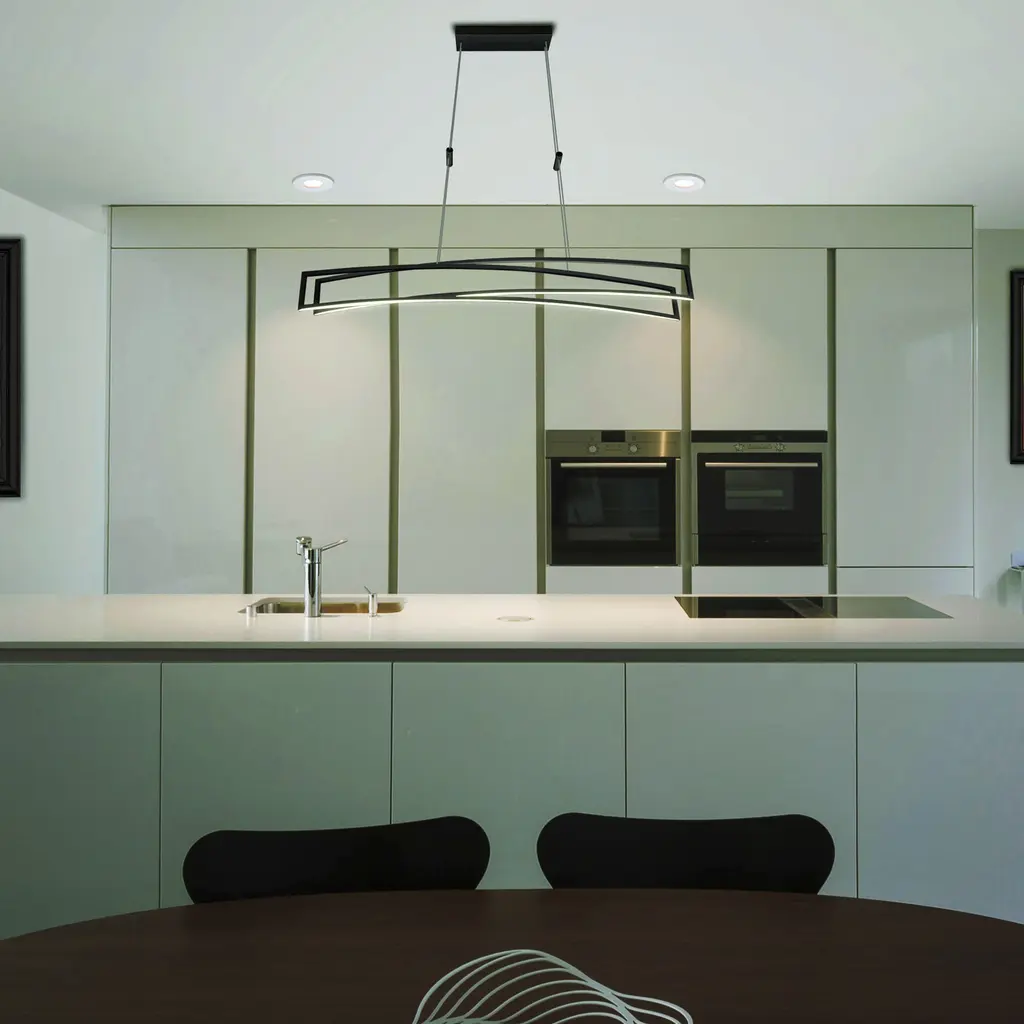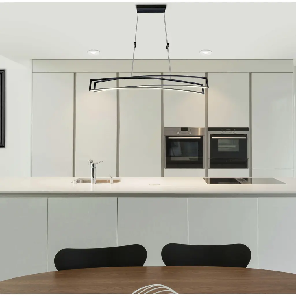 From VONN's Sirius Series, the VMC33440BL Integrated LED Linear Chandelier is a modern 46-inch fixture made from aluminum and acrylic, with a Black aluminum canopy and an Integrated LED Shade. The shade consists of a Sleek Rectangular shaped 2 lights in Black finish. Emitting a soft white ambient light at 3000 Kelvin, it offers adjustable height, dimmable functionality, and compatibility with sloped ceilings. With 2513.60 Lumens brightness, an energy-efficient power consumption of 74 Watts, and CRI 90, this linear chandelier combines style and efficiency for versatile and customizable illumination.