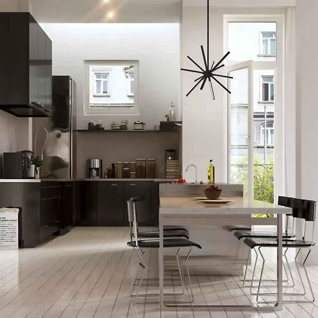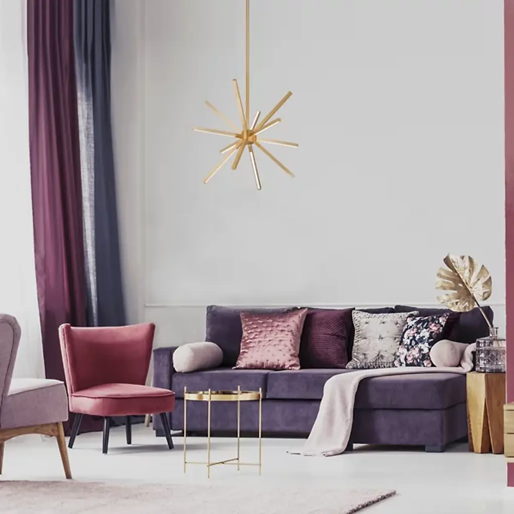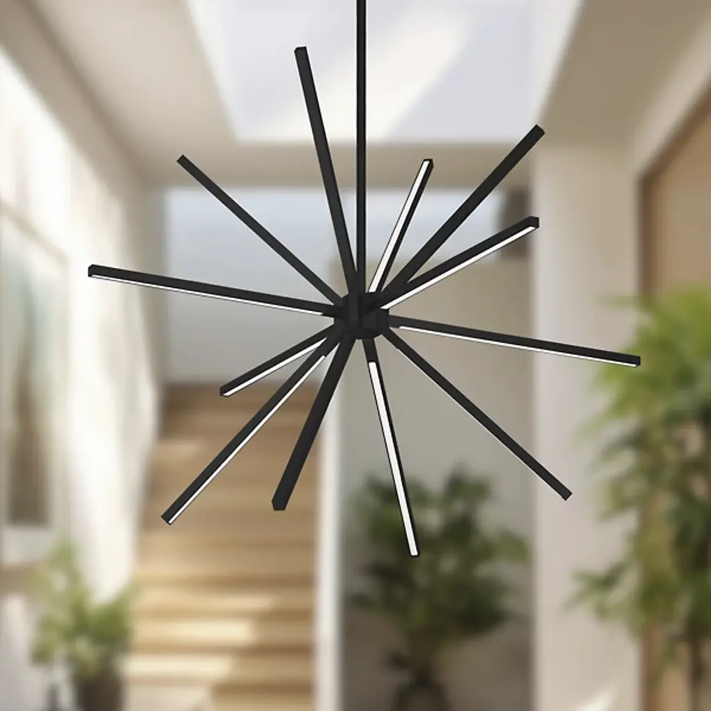 Of starbursts and satellites. The Sirius Minor LED Chandelier by Kuzco Lighting is inspired by an iconic mid-century modern design motif. Radiating from the center of the cluster formation are slender bars with frosted acrylic diffusers to create a light, airy look with a futuristic vibe perfect for contemporary living and dining spaces. With warm white illumination and dimming potential, this stylish ceiling fixture sets the tone for intimate evenings or chic dinner parties.