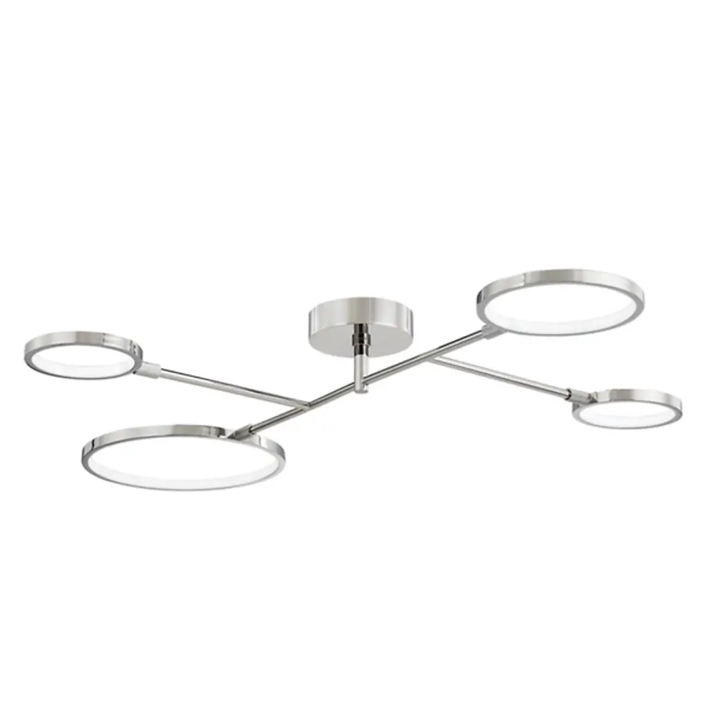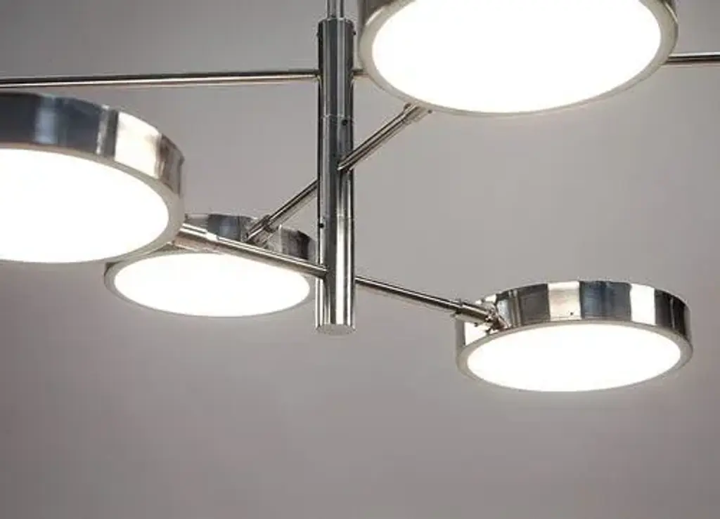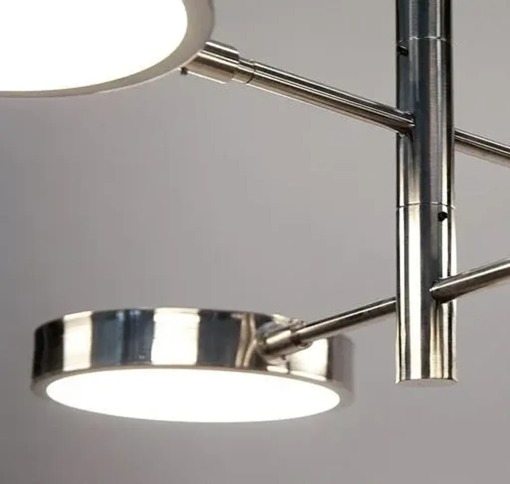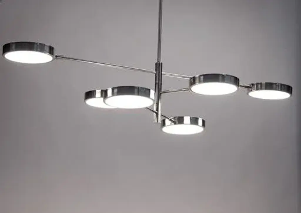 Brass Sistema chandelier, made with a nickel plated finish lightly brushed. This chandelier brings the popular chrome like finish to the Sistema and Sistema solare group. Labeled by Maker, Up to 250V (Europe/UK Standard).