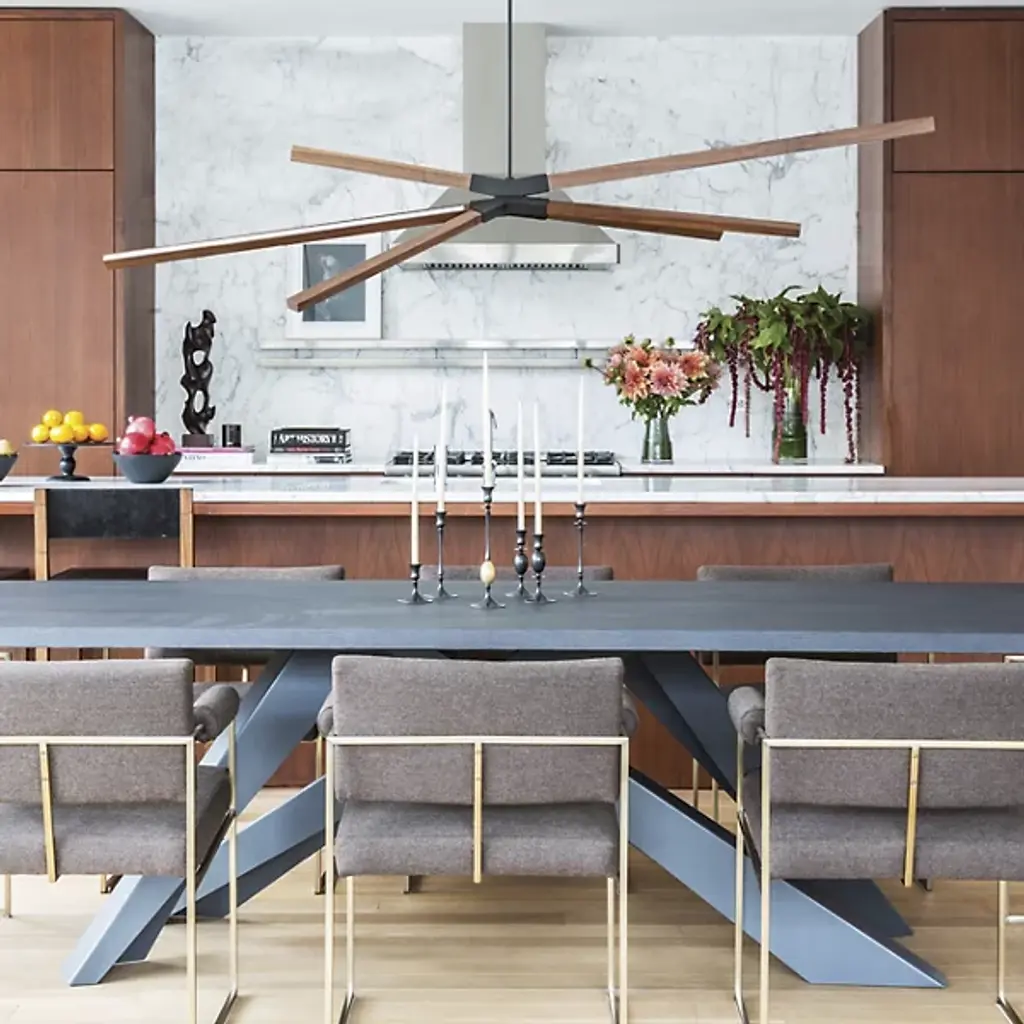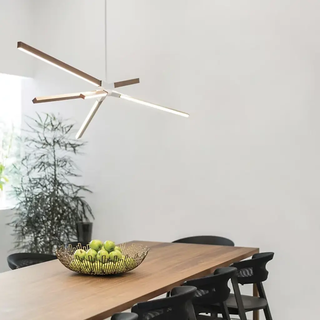 Inspired by the look of exploding fireworks, the Sky Bang LED Chandelier by Stickbulb lends a striking visual accent to contemporary spaces. This highly customizable fixture boasts a slender adjustable metal stem and central hub where a series of wooden beams convene. Each beam features an integrated energy-efficient LED light and can be arranged in various lengths and orientations to channel softly diffused light in the desired direction. Each component is sustainably sourced and handcrafted in New York with an array of finishes and sizes for a minimal structure with maximum adaptability.