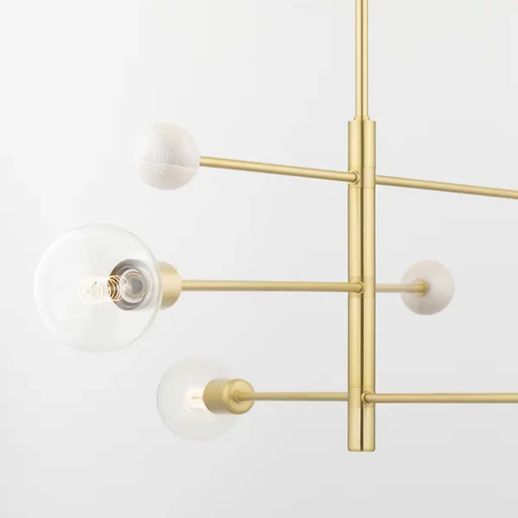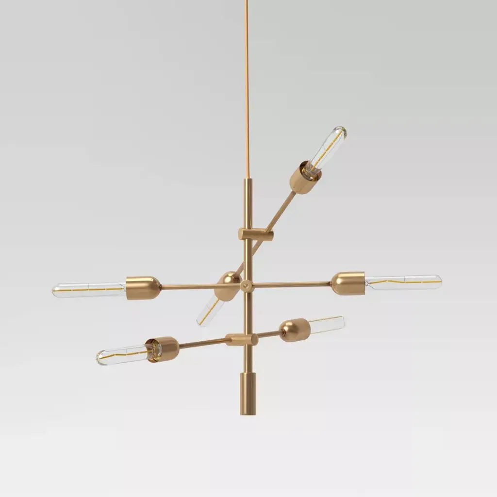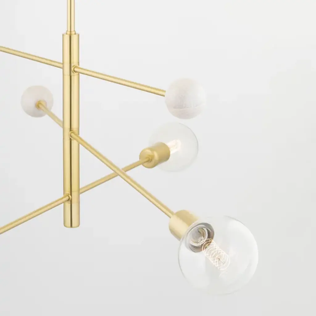 A playful approach to modern lighting, the Slater Chandelier by Mitzi is a sleek, eye-catching option for lighting your home. This beautiful overhead chandelier is sculpted with an ultra-slim design, using sleek lines to create a dynamic look. This mid-century style ceiling hung fixture is a beautiful marriage of modern and organic styles, allowing for it to fit within many design schemes. Boost the warmth and light levels in your living room and entryway spaces with this Mitzi chandelier.