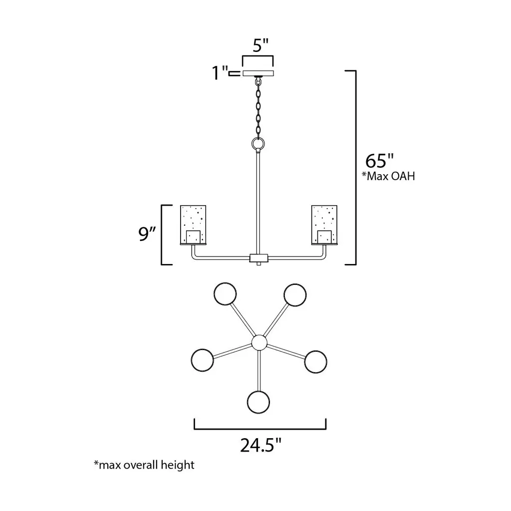 Cylinders in Clear Seeded glass on simple Satin Nickel frames or matte Black frames with Antiqued Brass socket covers. Pivoting arms on chandelier allow it to direct light up or down. Use filament lamps either tubular or Edison in shape for a Coastal or Industrial look, or use a traditional A19 to create a more transitional look. A full range of affordable lighting for the kitchen, dining room, bathroom, or bedroom that easily complements fashionable finishes and lasting styles.