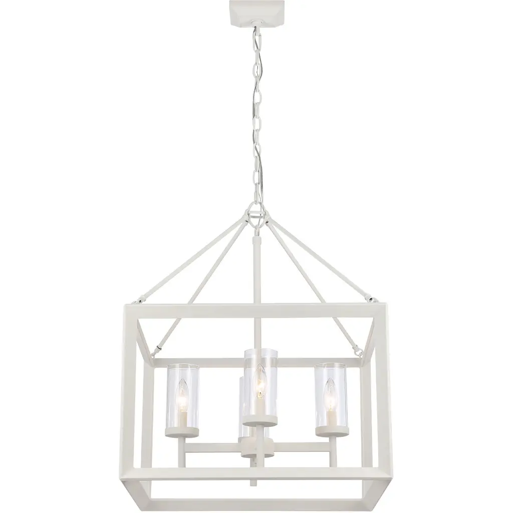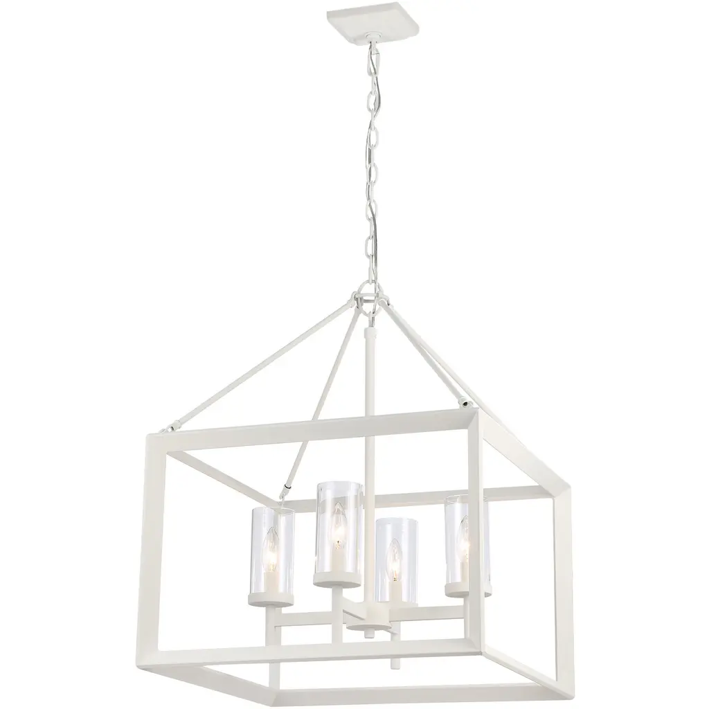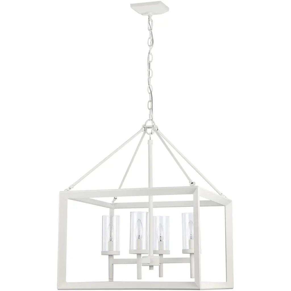 Bring a touch of organic elegance into your home with the Golden Lighting Smyth 4-light Chandelier. Featuring a glass shade and a natural white frame, it creates a welcoming atmosphere.The glass shade provides brilliant, unobstructed light, enhancing the clean lines of the chandelier while ensuring bright illumination.The natural white finish adds a soft, grounded feel with a chalky texture, making it a perfect foundational element for modern farmhouse designs.This chandelier is ideal for dry locations, making it perfect for dining rooms and foyers. It boasts sloped-ceiling compatibility and an adjustable height ranging from 28" to 99" for versatile installations.Overall Dimensions: 21"W x 26"H x 21"D. Requires 4 E12 Candelabra base bulbs (not included) at a maximum wattage of 60 per bulb.Elevate your home's aesthetic with the timeless design of Golden Lighting.