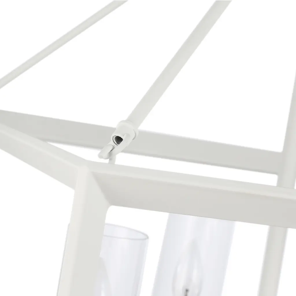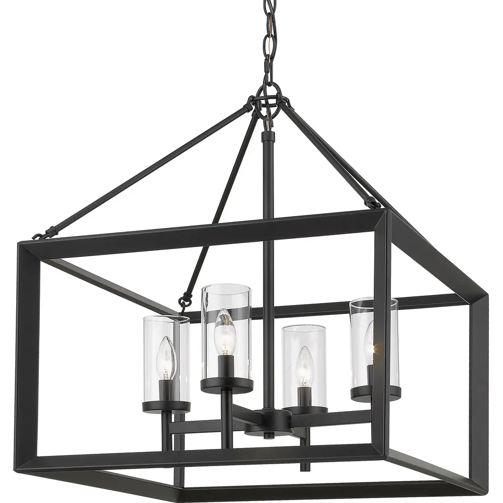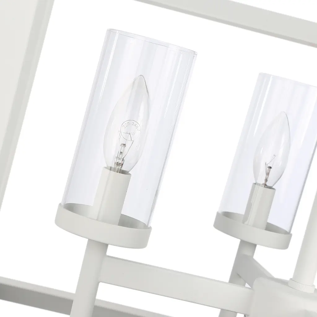 Bring a touch of organic elegance into your home with the Golden Lighting Smyth 4-light Chandelier. Featuring a glass shade and a natural white frame, it creates a welcoming atmosphere.The glass shade provides brilliant, unobstructed light, enhancing the clean lines of the chandelier while ensuring bright illumination.The natural white finish adds a soft, grounded feel with a chalky texture, making it a perfect foundational element for modern farmhouse designs.This chandelier is ideal for dry locations, making it perfect for dining rooms and foyers. It boasts sloped-ceiling compatibility and an adjustable height ranging from 28" to 99" for versatile installations.Overall Dimensions: 21"W x 26"H x 21"D. Requires 4 E12 Candelabra base bulbs (not included) at a maximum wattage of 60 per bulb.Elevate your home's aesthetic with the timeless design of Golden Lighting.