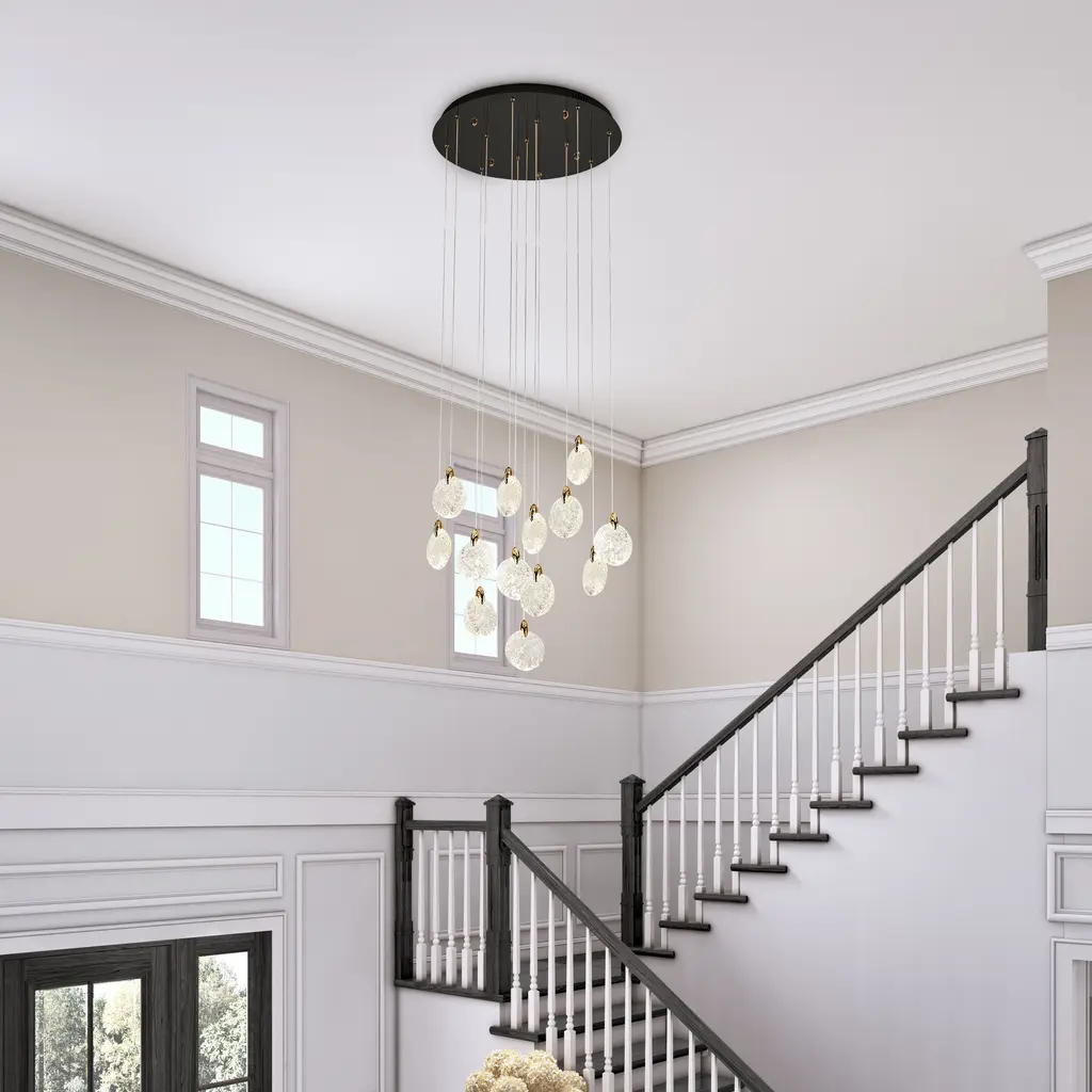 The Snowflake chandelier is a masterpiece of elegance, featuring rock-style cut glassware that glistens like frosted crystals, illuminated by energy-efficient LED lighting. Delicate brass holders cradle each glass piece, all suspended from a matte black canopy that adds a dramatic contrast. Its thoughtful design includes a 3CCT switch, allowing you to choose between warm, neutral, or cool color temperatures (3K, 4K, 6K), and the dimmable functionality lets you tailor the ambiance to perfection. The easily adjustable wires ensure a seamless fit for any ceiling height, making this chandelier as versatile as it is enchanting.