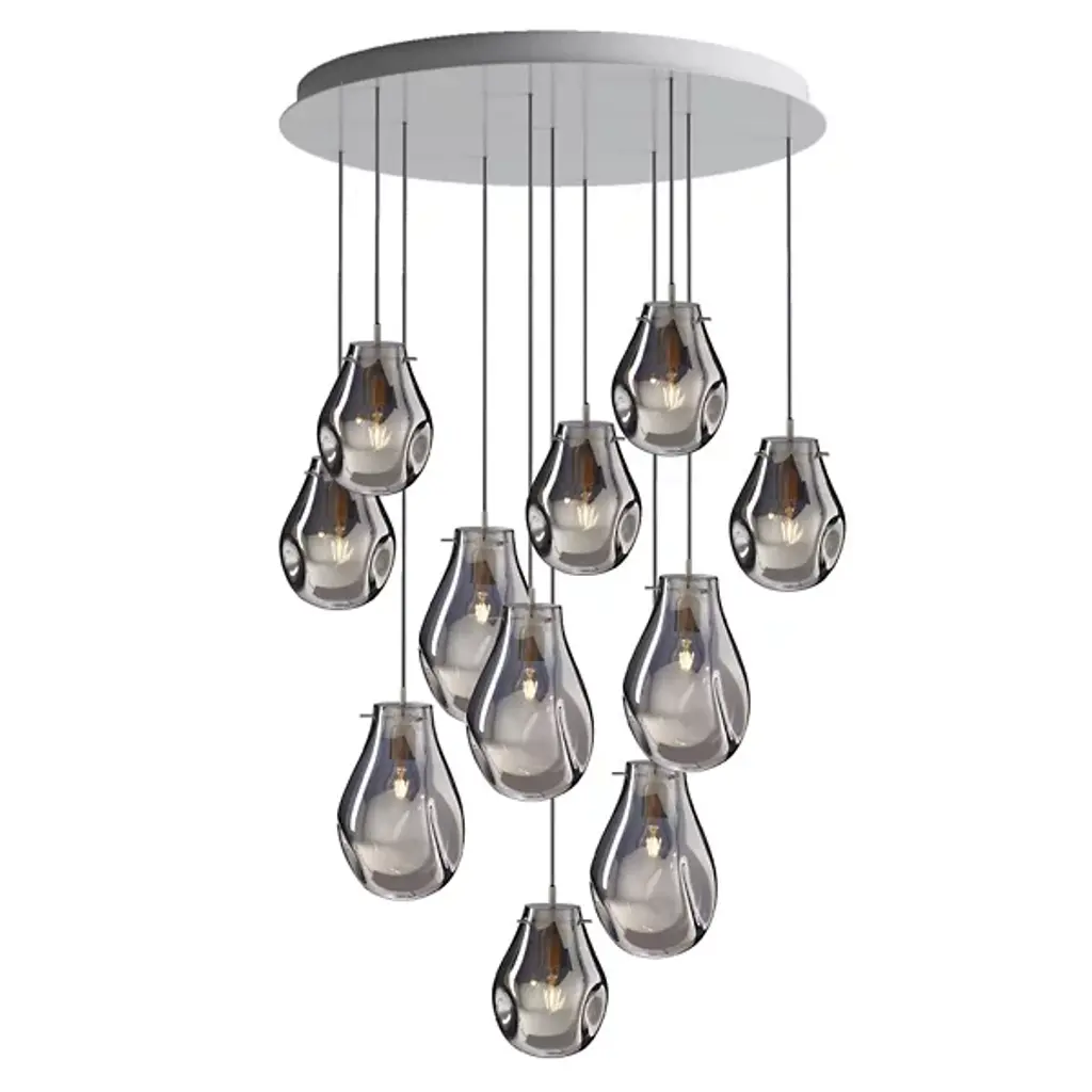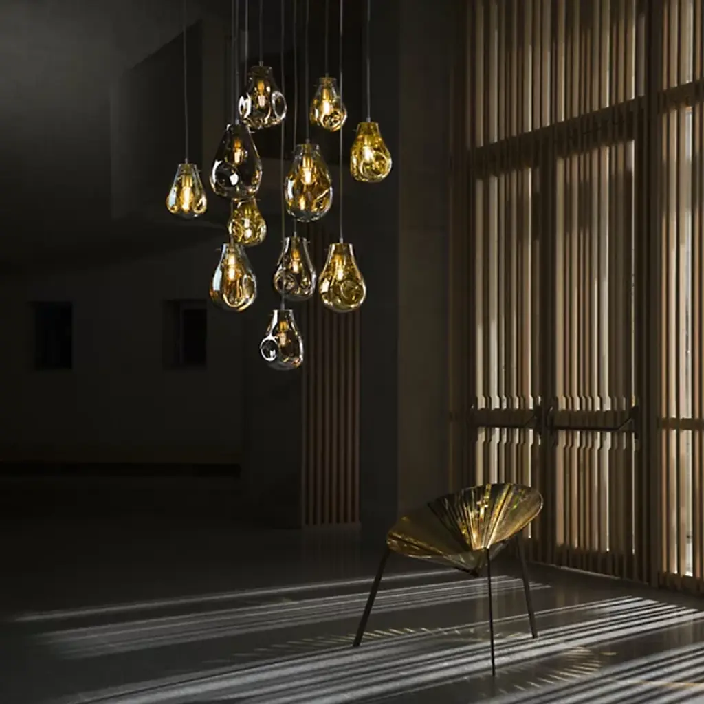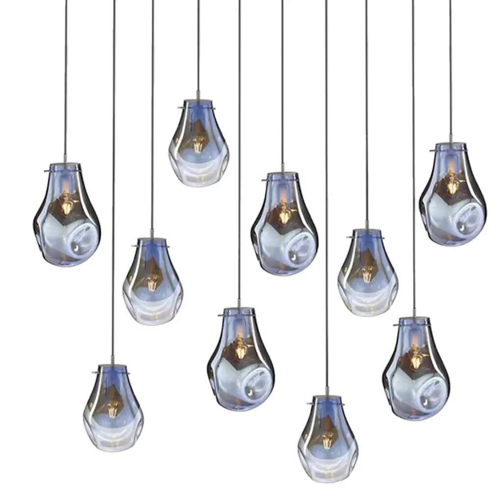 The Soap 11 Chandelier from Bomma features varied colors, transparency, and continuously changing shapes. When lit, a metallic sheen transforms iridescent and translucent, exposing its crystal character. It's produced using the technique of handblowing without a form. A seemingly perfect drop of molten glass is given a unique shape and a unique color of the spectrum. You can create clever compositions from a larger number of individual light fixtures or combine their color schemes.