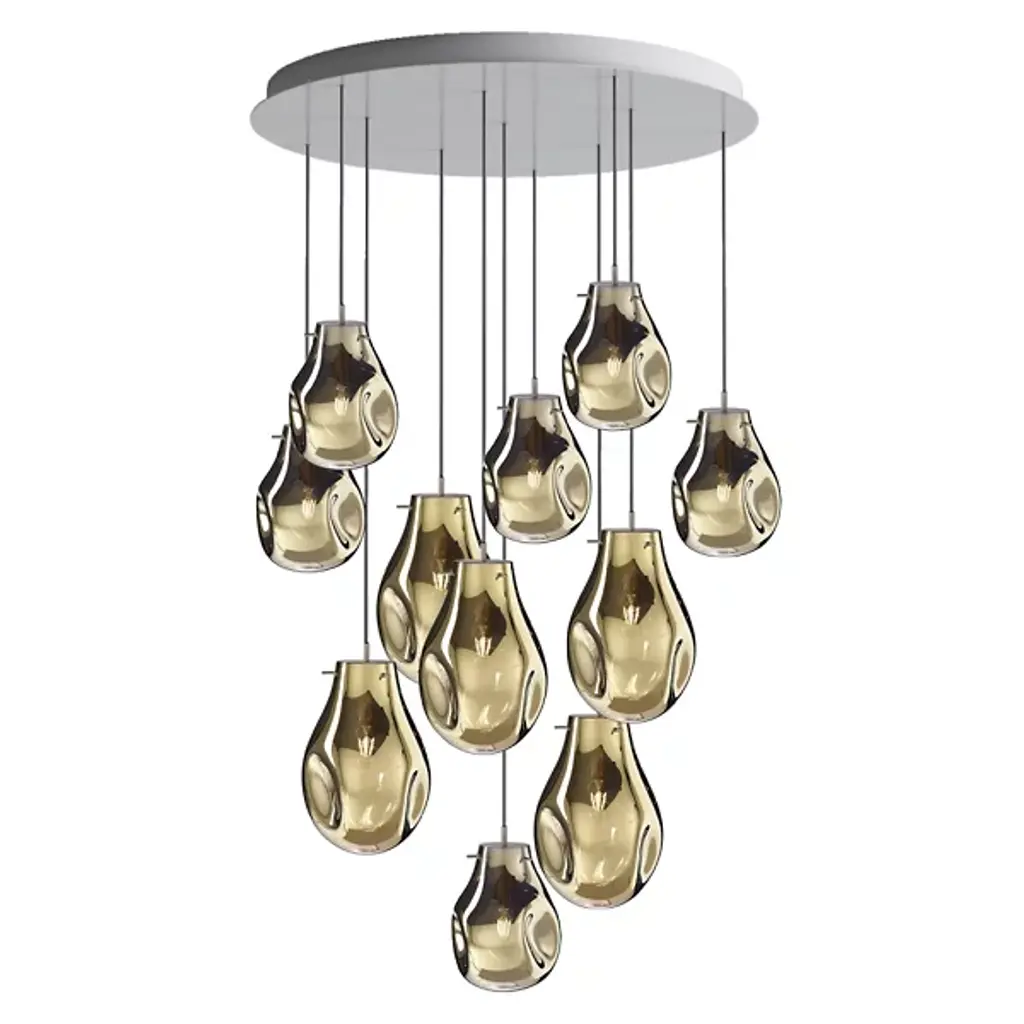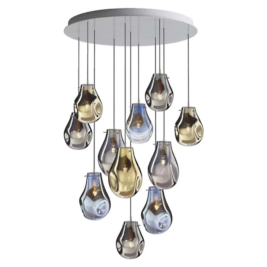 The Soap 11 Chandelier from Bomma features varied colors, transparency, and continuously changing shapes. When lit, a metallic sheen transforms iridescent and translucent, exposing its crystal character. It's produced using the technique of handblowing without a form. A seemingly perfect drop of molten glass is given a unique shape and a unique color of the spectrum. You can create clever compositions from a larger number of individual light fixtures or combine their color schemes.