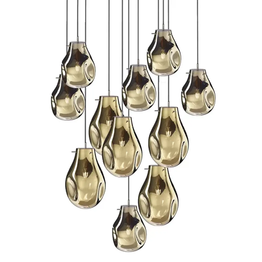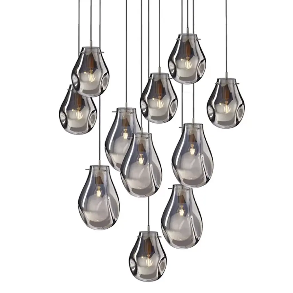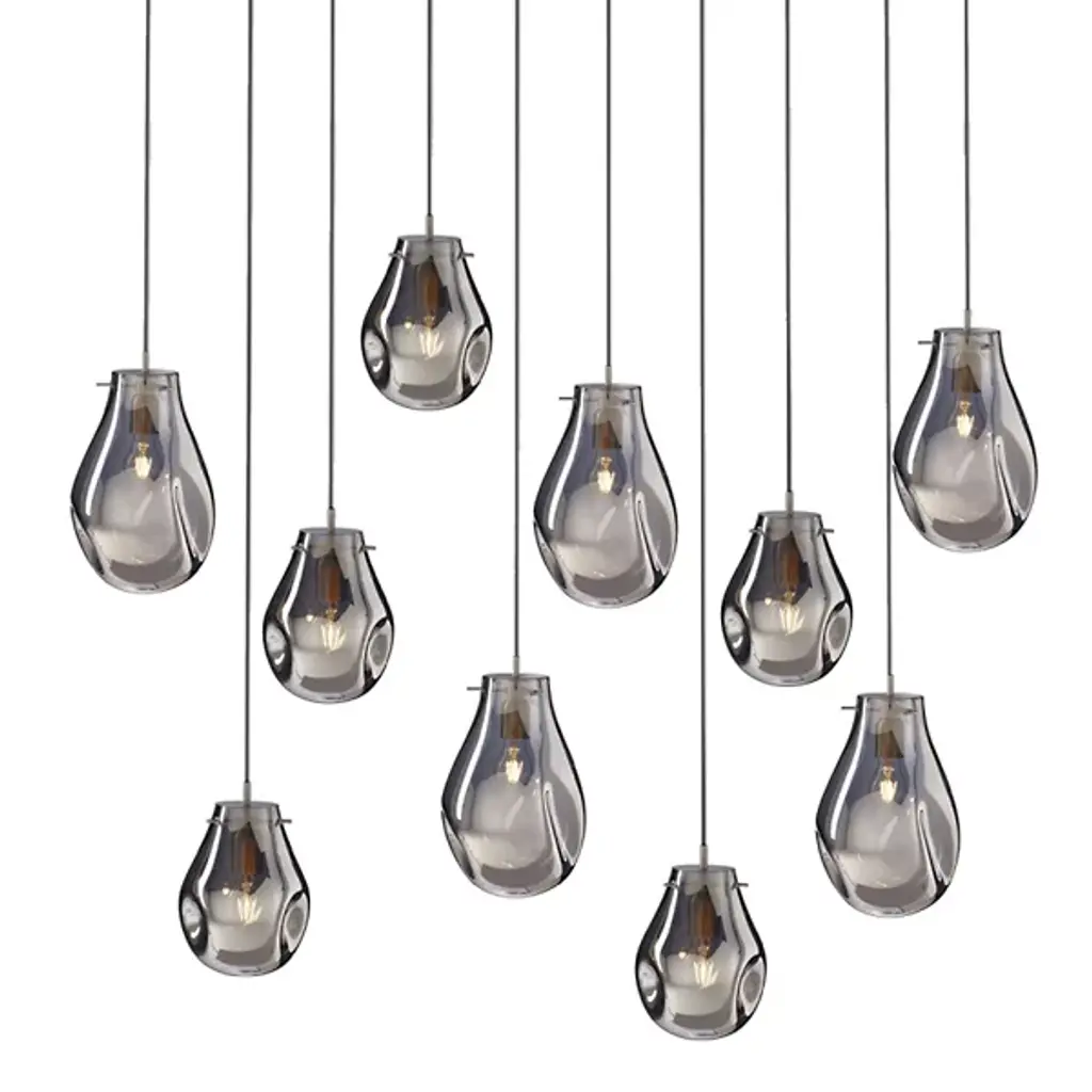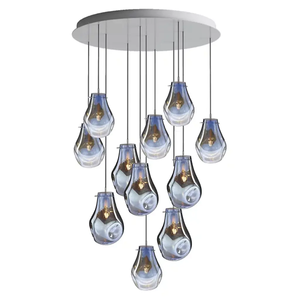 The Soap 11 Chandelier from Bomma features varied colors, transparency, and continuously changing shapes. When lit, a metallic sheen transforms iridescent and translucent, exposing its crystal character. It's produced using the technique of handblowing without a form. A seemingly perfect drop of molten glass is given a unique shape and a unique color of the spectrum. You can create clever compositions from a larger number of individual light fixtures or combine their color schemes.