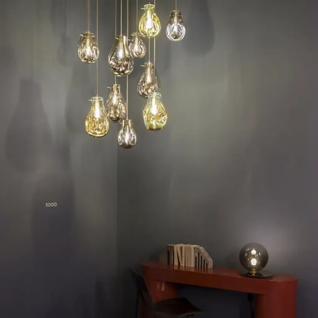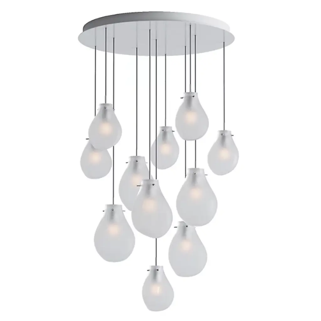 The Soap 11 Chandelier from Bomma features varied colors, transparency, and continuously changing shapes. When lit, a metallic sheen transforms iridescent and translucent, exposing its crystal character. It's produced using the technique of handblowing without a form. A seemingly perfect drop of molten glass is given a unique shape and a unique color of the spectrum. You can create clever compositions from a larger number of individual light fixtures or combine their color schemes.