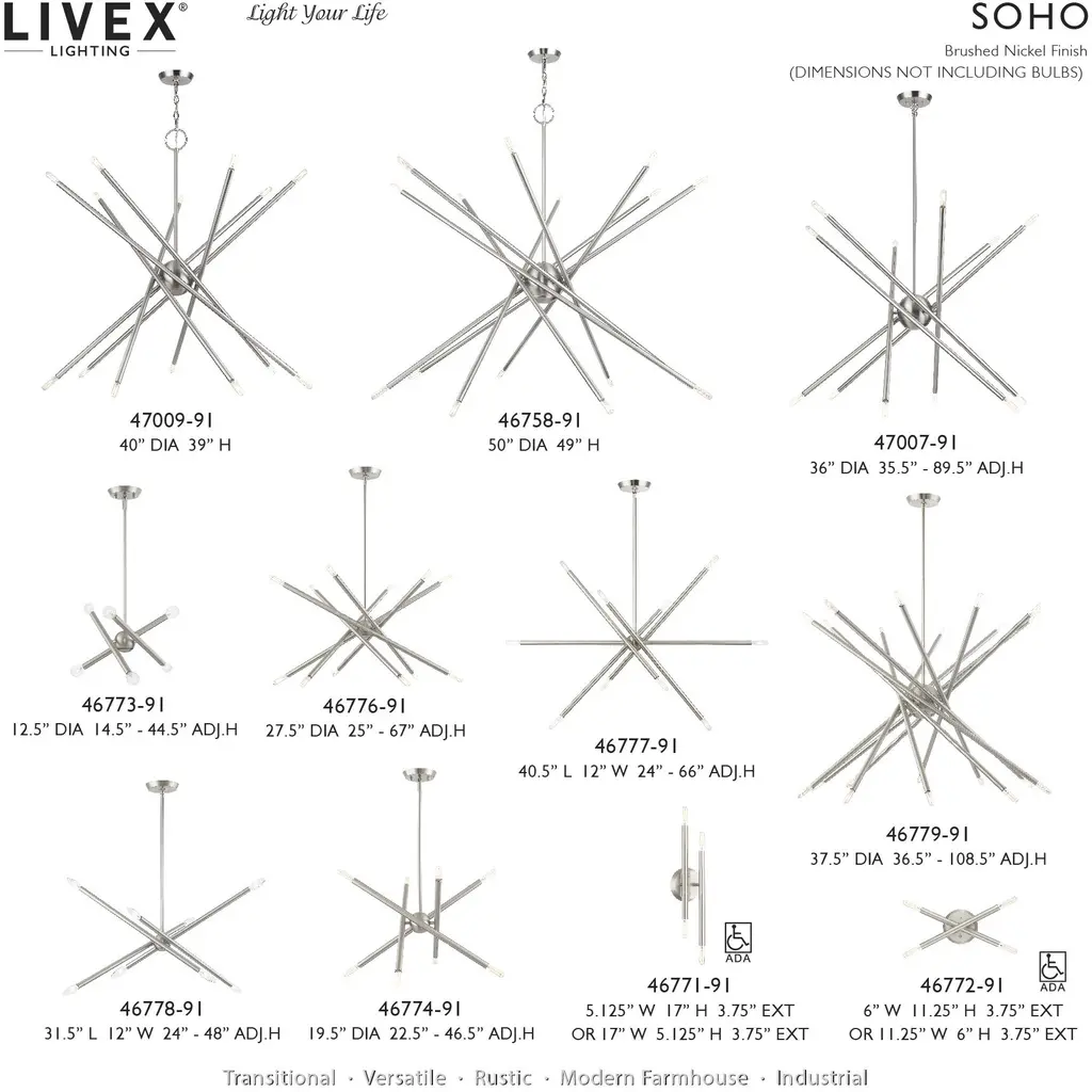 Soho 14 Light 40 Inch Brushed Nickel Foyer Chandelier Ceiling Light