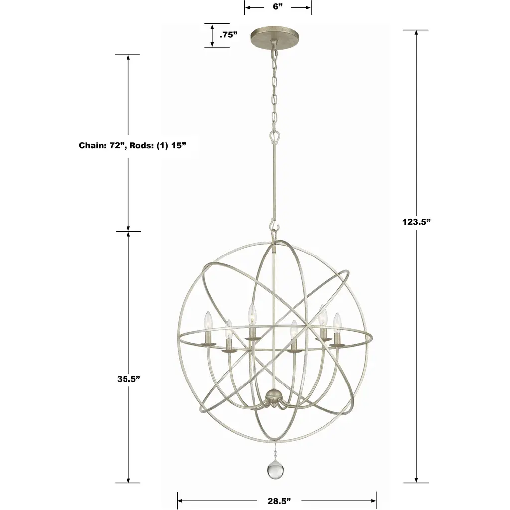 Solaris 6 Light 28.5 Inch Olde Silver Chandelier Ceiling Light