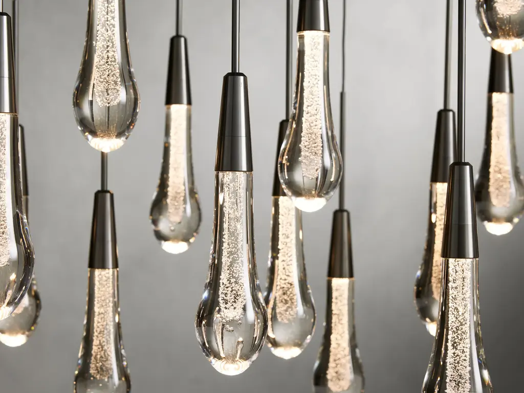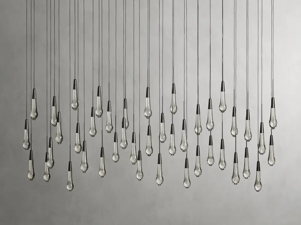 Featuring adjustable black PVC cords cascading into integrated LED lights handcrafted from seeded glass, our Soltaire Lighting Collection mimics the look of a fallen raindrop.