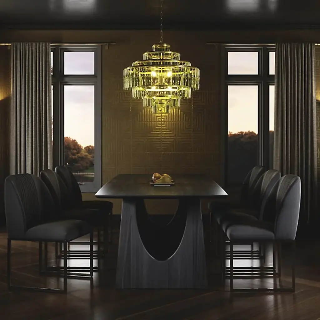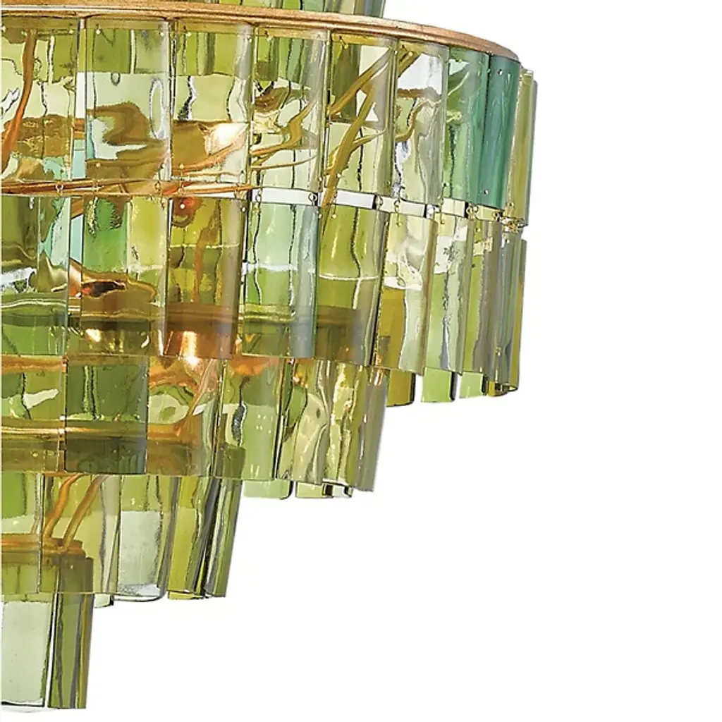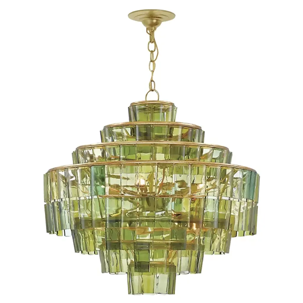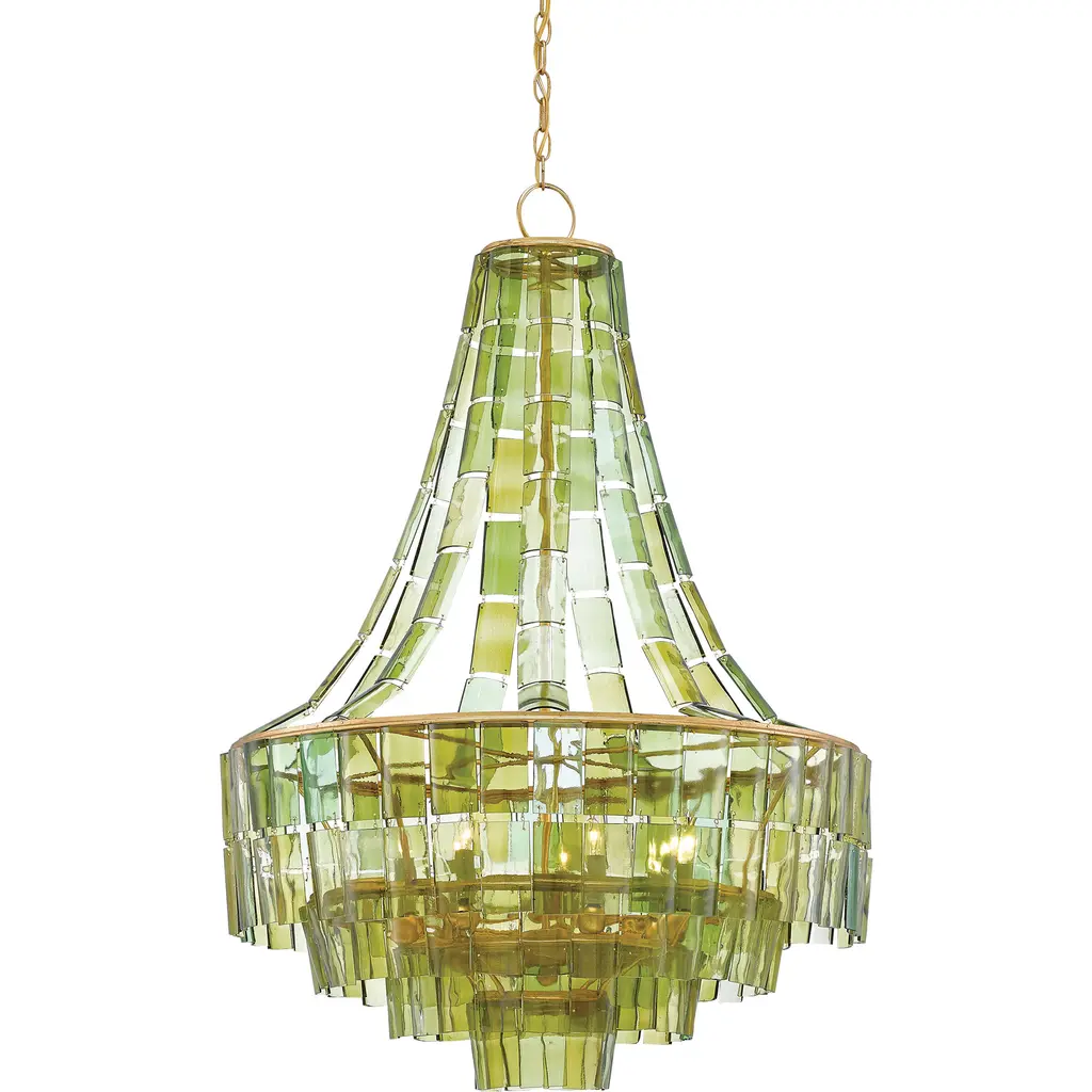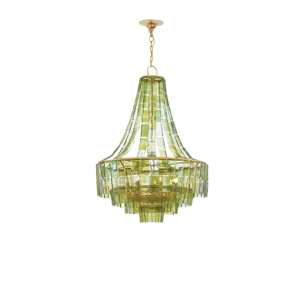 The Currey & Company Sommelier Chandelier brings a DIY spin to the iconic form. Each layer of the tiered chandelier is made of pieces of individually cut glass from recycled bottles. The subtle variance between the glass brings an artisan feel to the piece, while still being classic in appearance. Bold yet sophisticated, this lighting option will illuminate your space with a craftsman meets classical aesthetic.