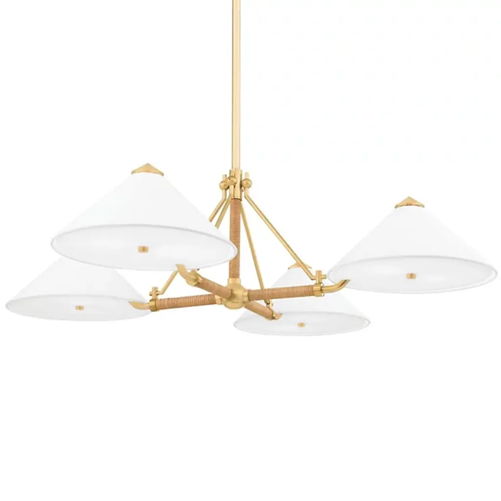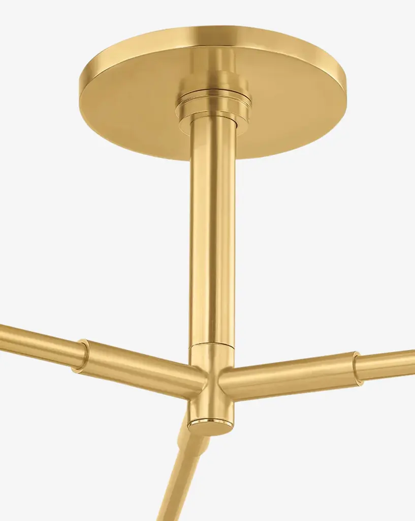 Blending mid-century modern influences with minimalist modern design, the Sonja Chandelier is a stunning addition to your home lighting. The three-light chandelier features a structure with a vibrant aged brass finish and shades with rounded tops and rolled edges. Refined yet inviting, it elevates any room with its beauty and atmospheric light.