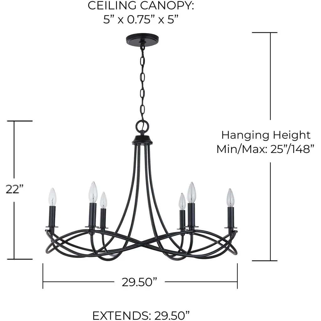 29" 6-Light Chandelier in Matte Black