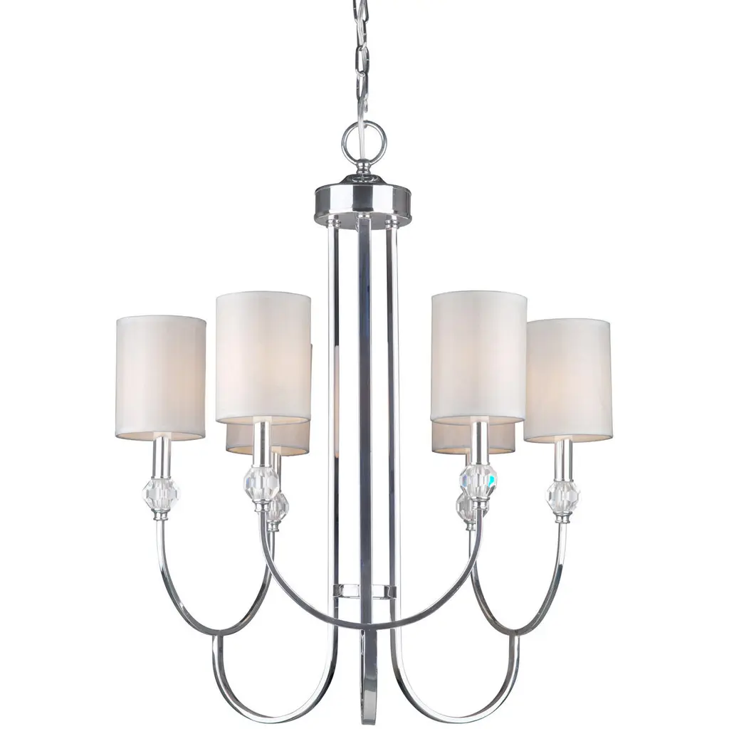 Sophia, the name alone evokes images of a daring yet timeless style. The Chrome finished metal framing works to boldly present the elegant crystal appointments, the silk shades offer a refined finishing touch. A marrying of traditional elements with a simple form, Sophia offers equal luxury to traditional or contemporary settings.