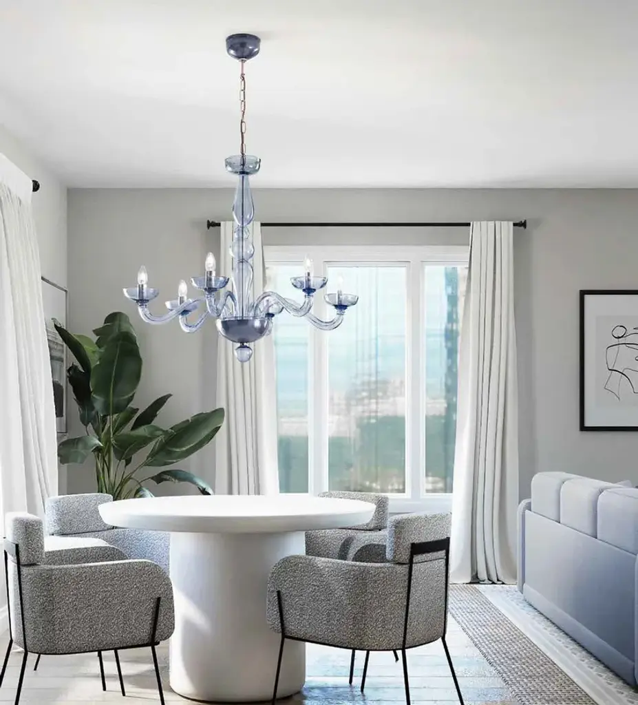 Sophie is a chandelier in blown glass, an object meticulously worked, selecting a range of metallic finishes, glass colours and precious details that make it unique and handcrafted.1002/9: 9 bulbs (E14 - 40W)1002/6: 6 bulbs (E14 - 40W)