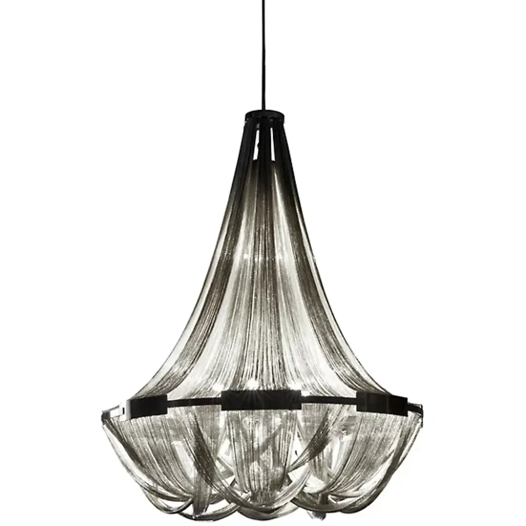 Reinventing a classic look, the Terzani Soscik Chandelier takes the idea of the chandelier and gives it a modern upgrade. The chains that drape themselves around the metal frame provide a unique screen through which inner illumination peeks through one spot and shines through another.