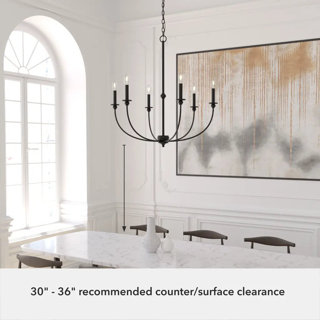 Southcrest 6 Light 30 Inch Flat Matte Black Chandelier Ceiling Light