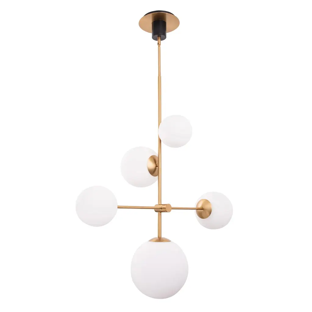 The Spark Modern Gold 5 Light Chandelier is a stunning addition to any home decor. Crafted from high-quality steel, this chandelier is not only durable but also elegant in design.【Opal Glass Shades】 : The chandelier features opal glass shades that add a touch of sophistication to your space.【Dimmable Lighting Flexibility】 : Fully dimmable functionality allows precise control over brightness levels, enabling you to set the perfect ambiance for dining, relaxation, or task lighting.【Bulbs Not Included】 : Please note that the bulbs are not included with the product, allowing you to choose the color temperature of your preference.【40-Watt Bulbs】 : The Spark Modern Gold 5 Light Chandelier supports bulbs up to 40 watts and can be used with LED or incandescent bulbs alike.【Safety Rated】 : This chandelier has been ETL safety rated, providing you with peace of mind knowing that it meets industry safety standards.