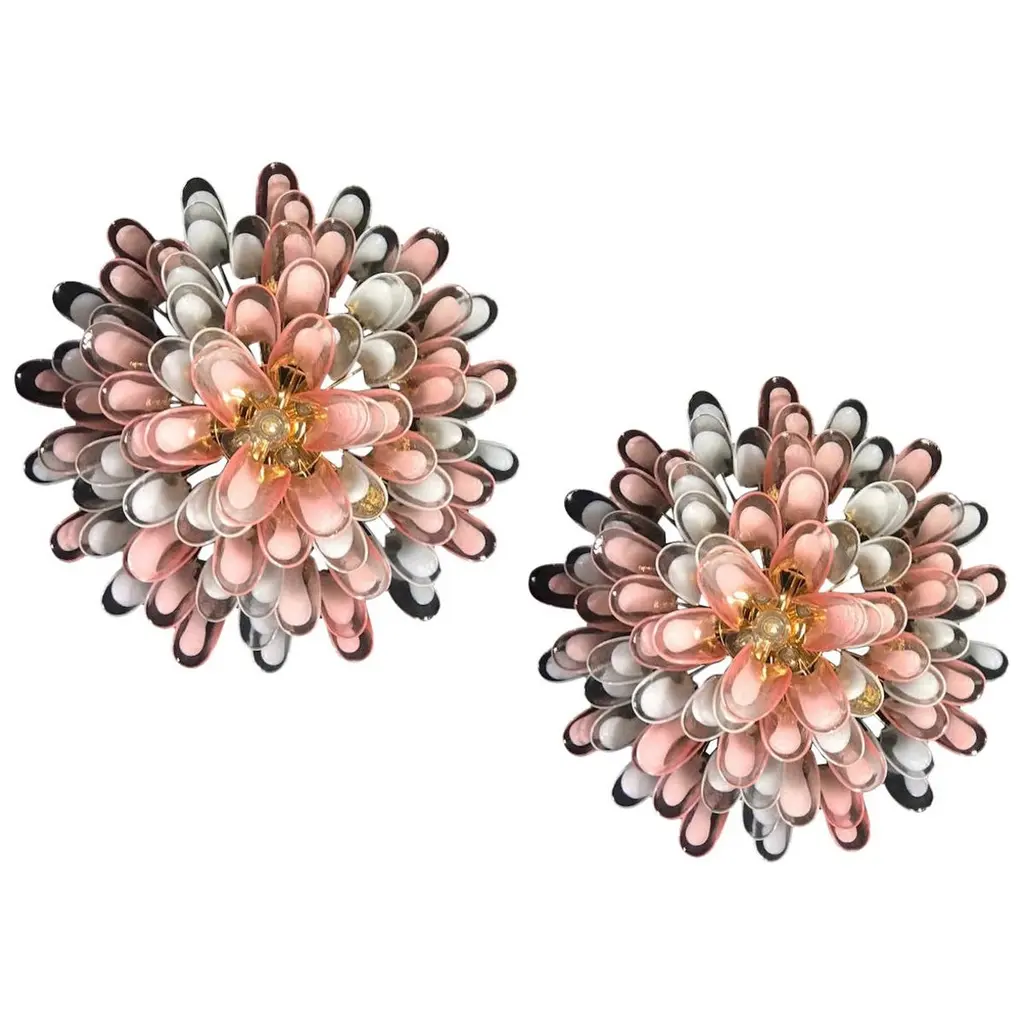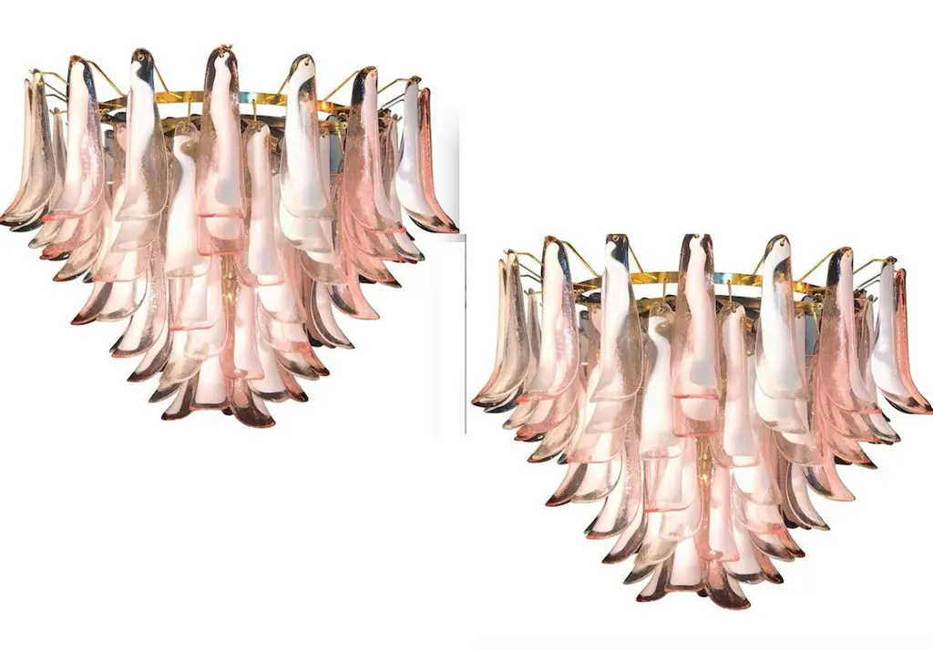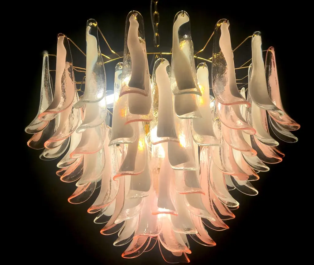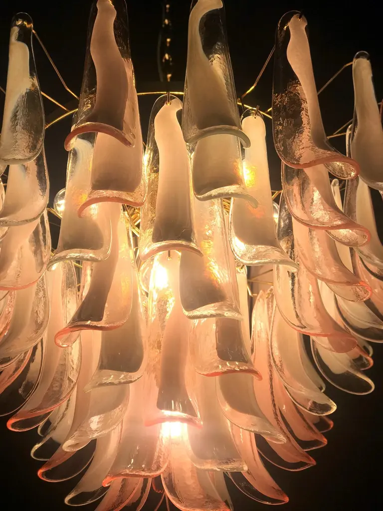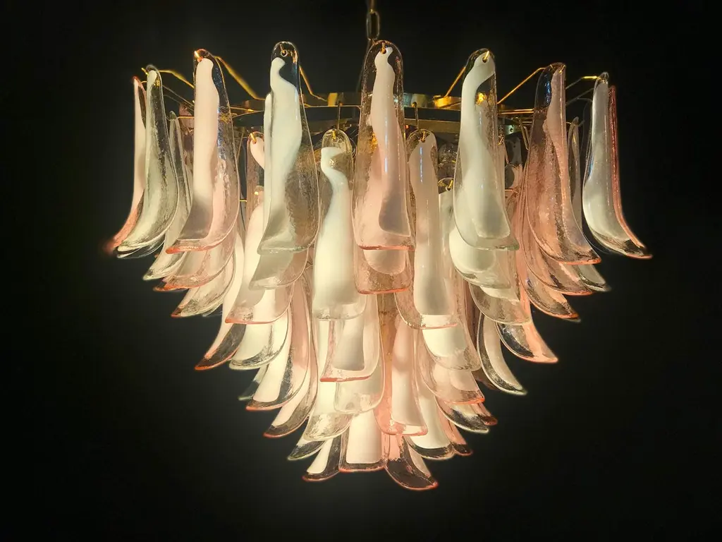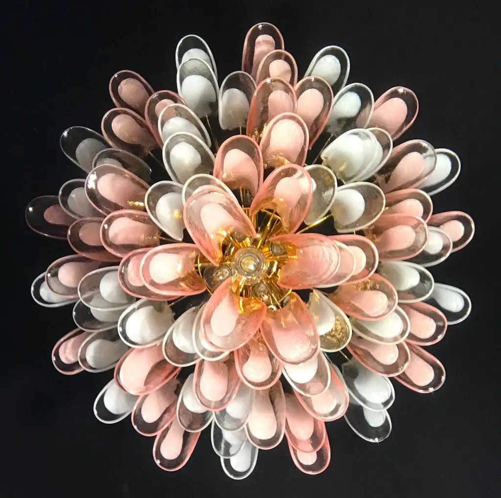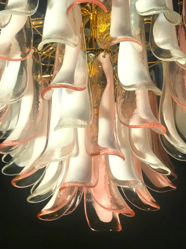 Spectacular Pink And White Murano Glass Petals Chandelier With Brass Frame