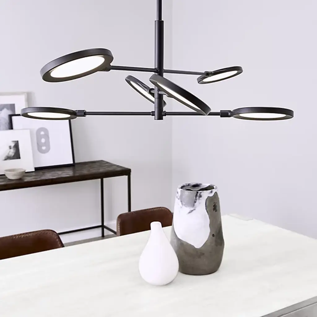 The Spectica 6 LED Chandelier is sleek and modern, an inspired piece from traditional design which fits many interior spaces. The Spectica is environmentally friendly, it's adjustable arms features a pivoting canopy. Place the Spectica in a dining room, hall, or living room space where you can adapt its arms to the desired angle of lighting. Available in a range of finishes and voltages.